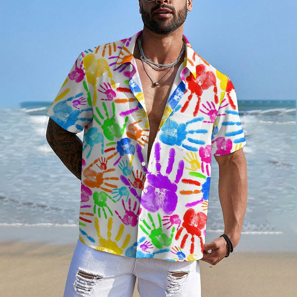 Colorful Palm Prints Casual Short Sleeve Shirt 2412005990
