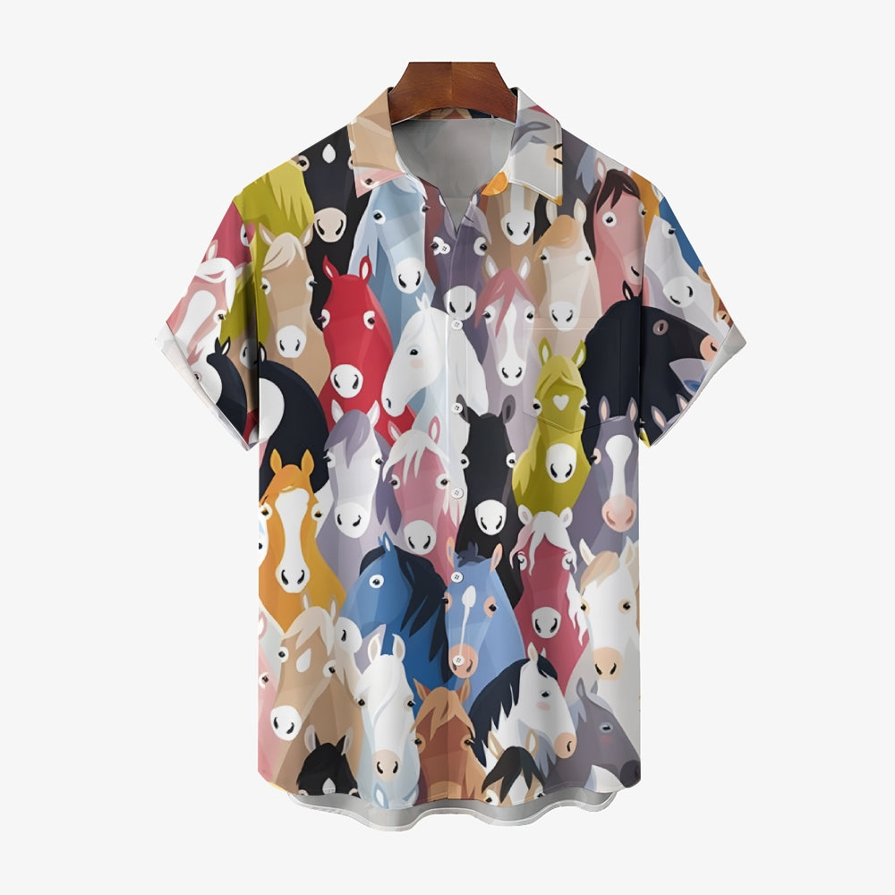 Men's Colored Horse Casual Short Sleeve Shirt 2410006996