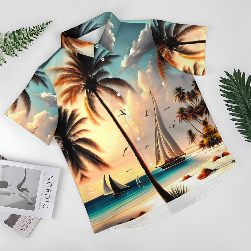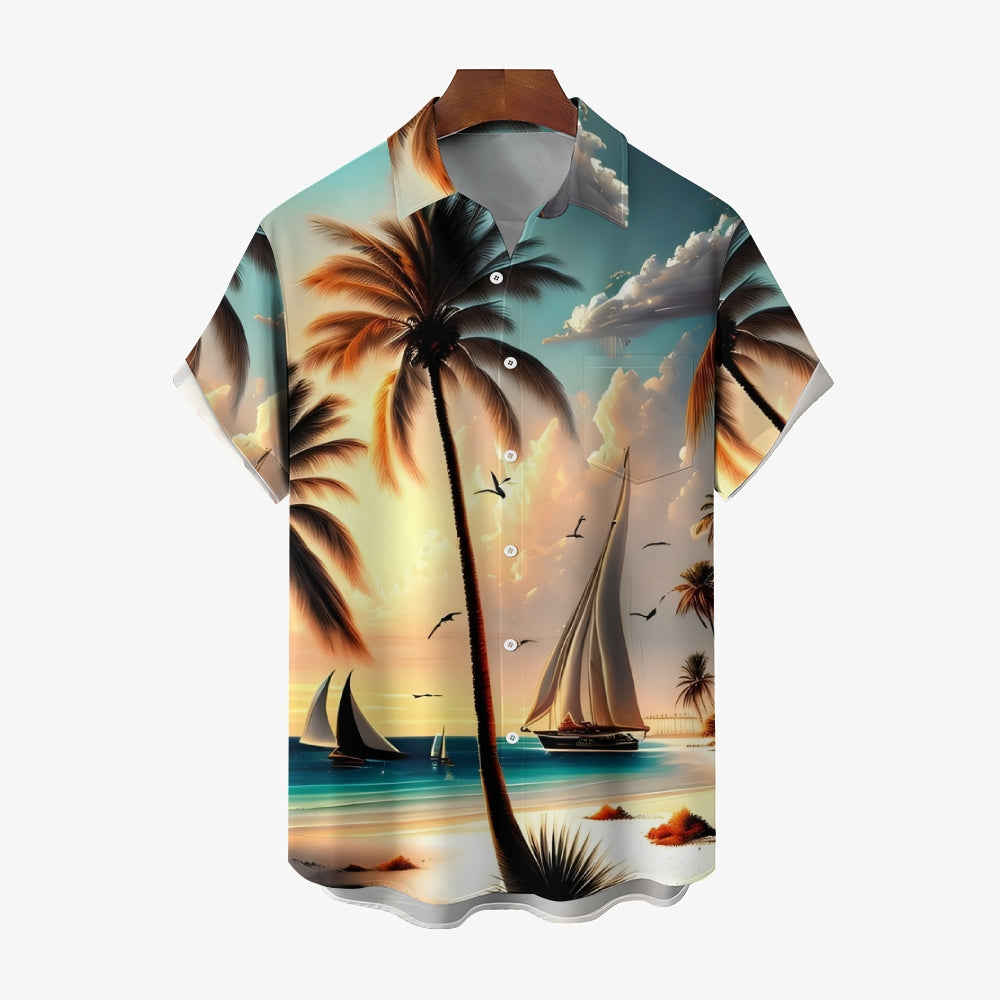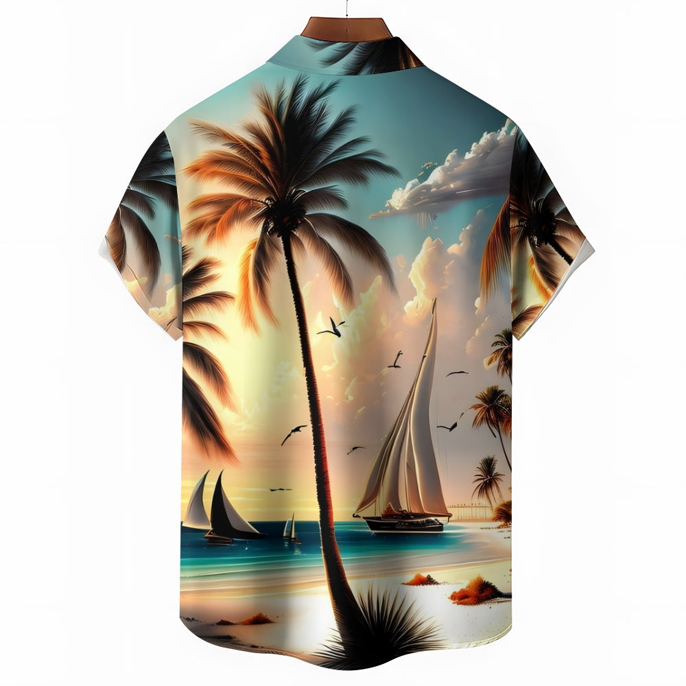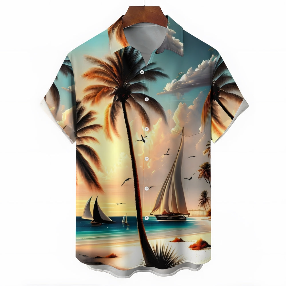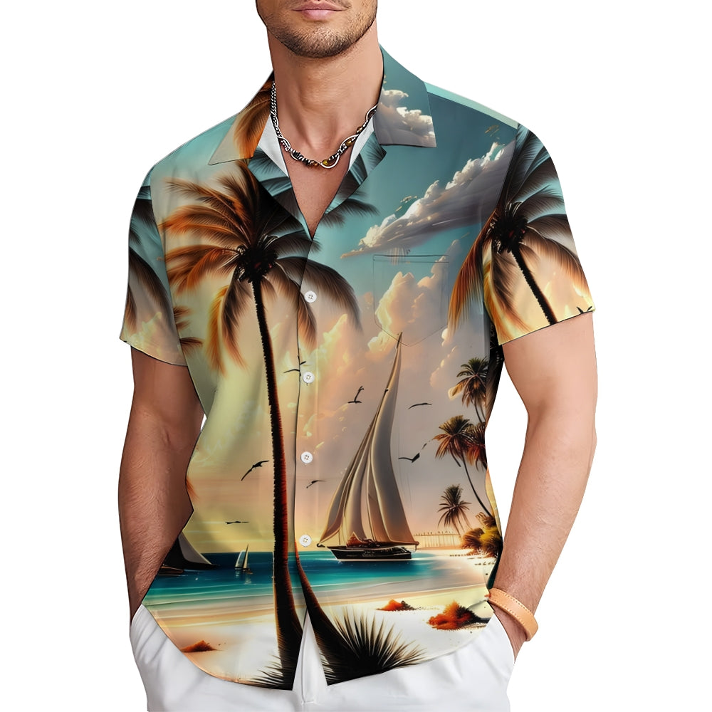 Men's Hawaiian Sailboat Casual Short Sleeve Shirt 2405000203