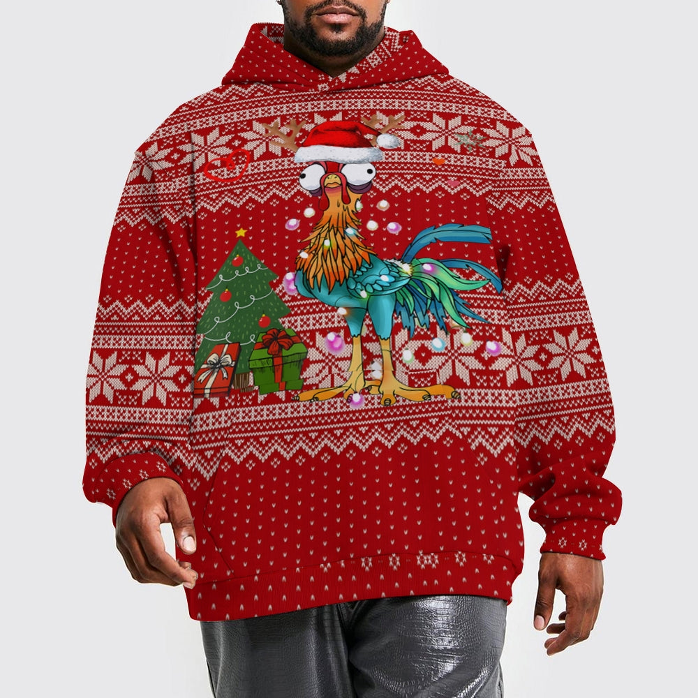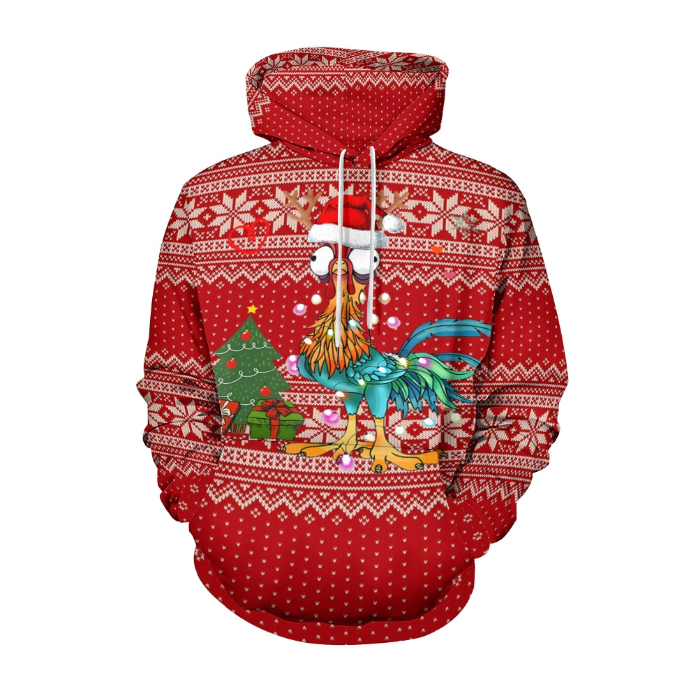 Plue Size Merry Christmas Rooster Cartoon Printed Hoodies 2411009042