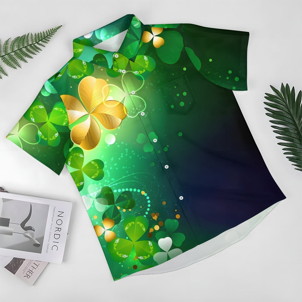 St. Patrick's Day Four-Leaf Clover Print Casual Shirt 2412006491