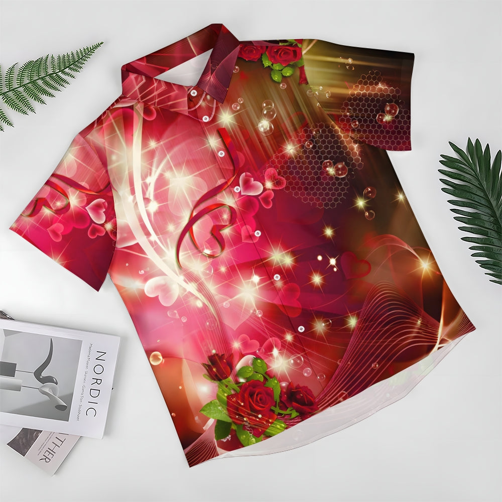 Valentine's Day Love Roses Print Short Sleeve Shirt 2412007602