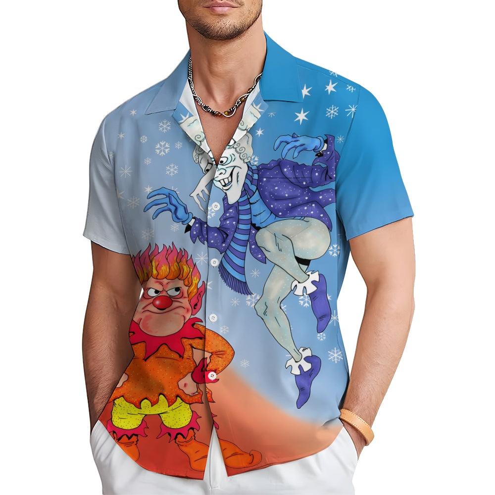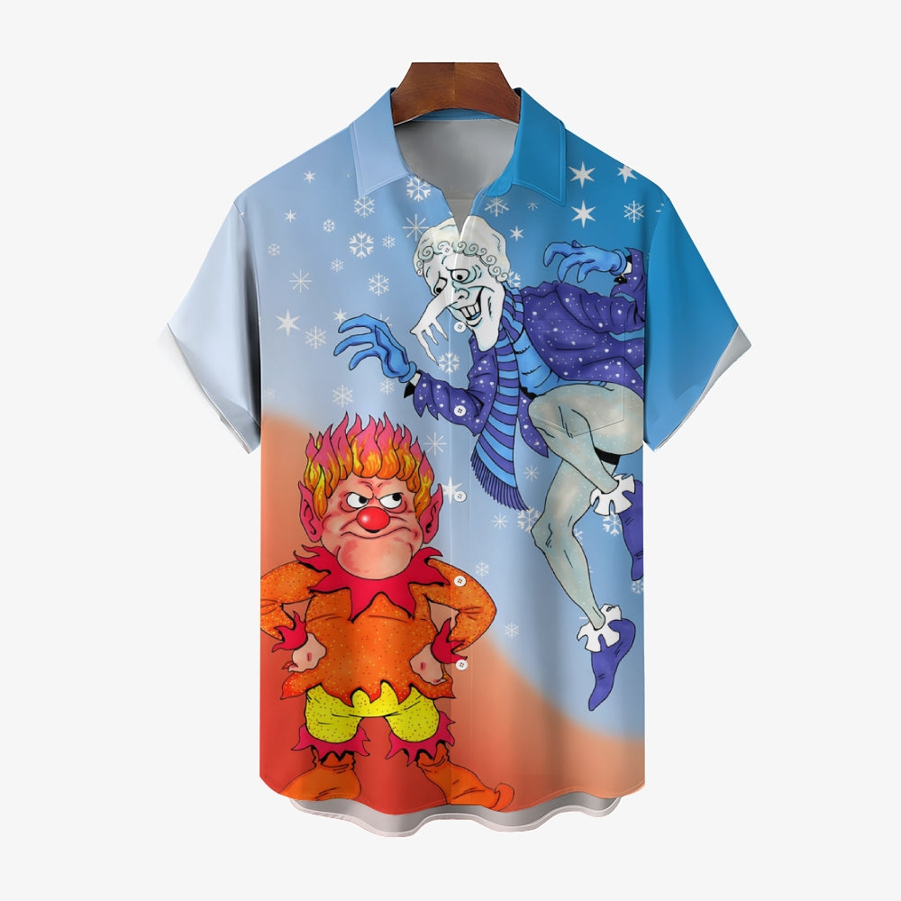 Men's Cartoon Ice and Fire Character Prints Short Sleeve Shirt 2412002821