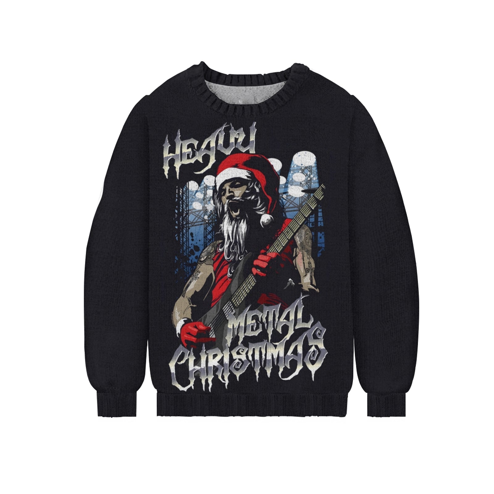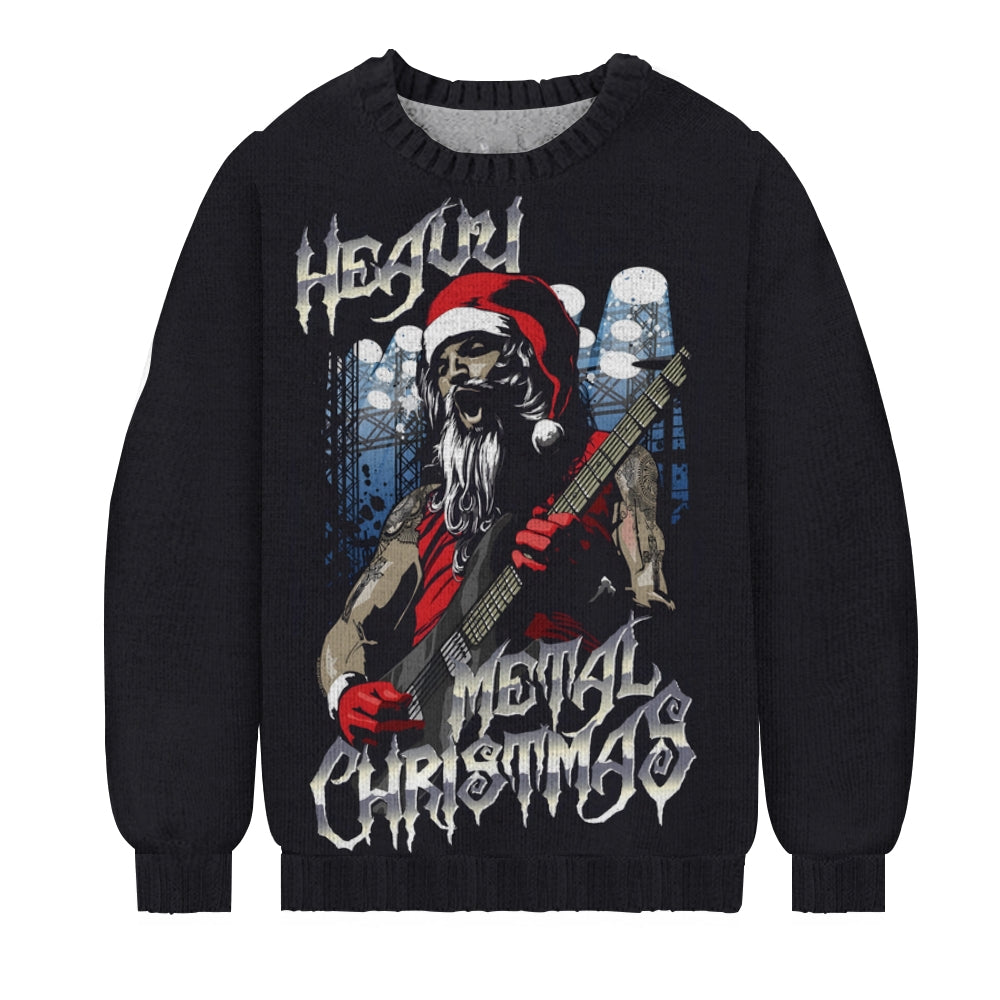 Men's Rock Christmas Print Casual Knit Crew Neck Sweater 2411010332