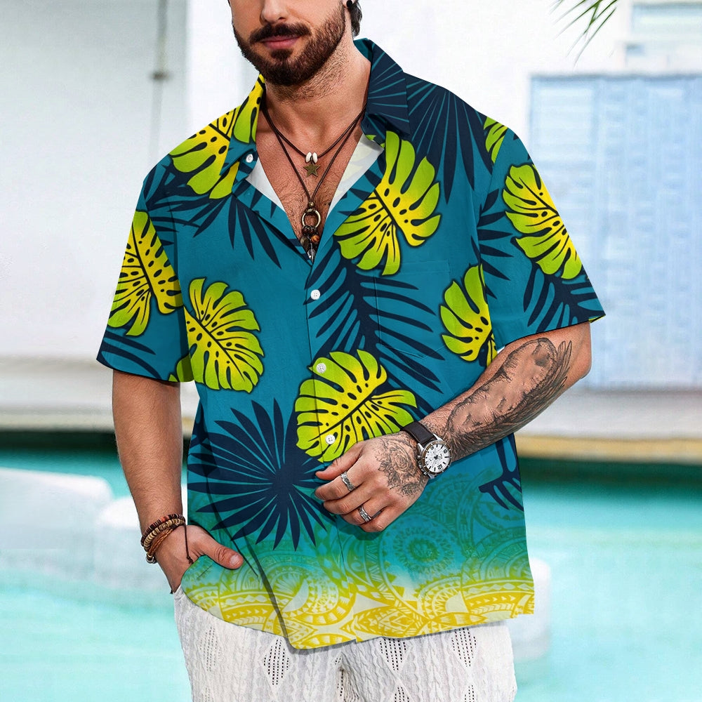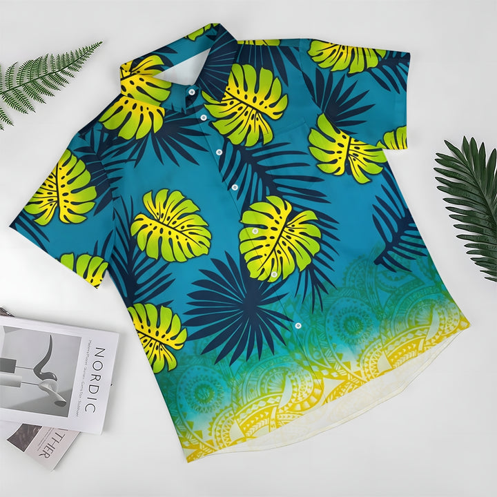 Abstract Geometric Gradient Coconut Tree Print Short Sleeve Shirt 2412006315