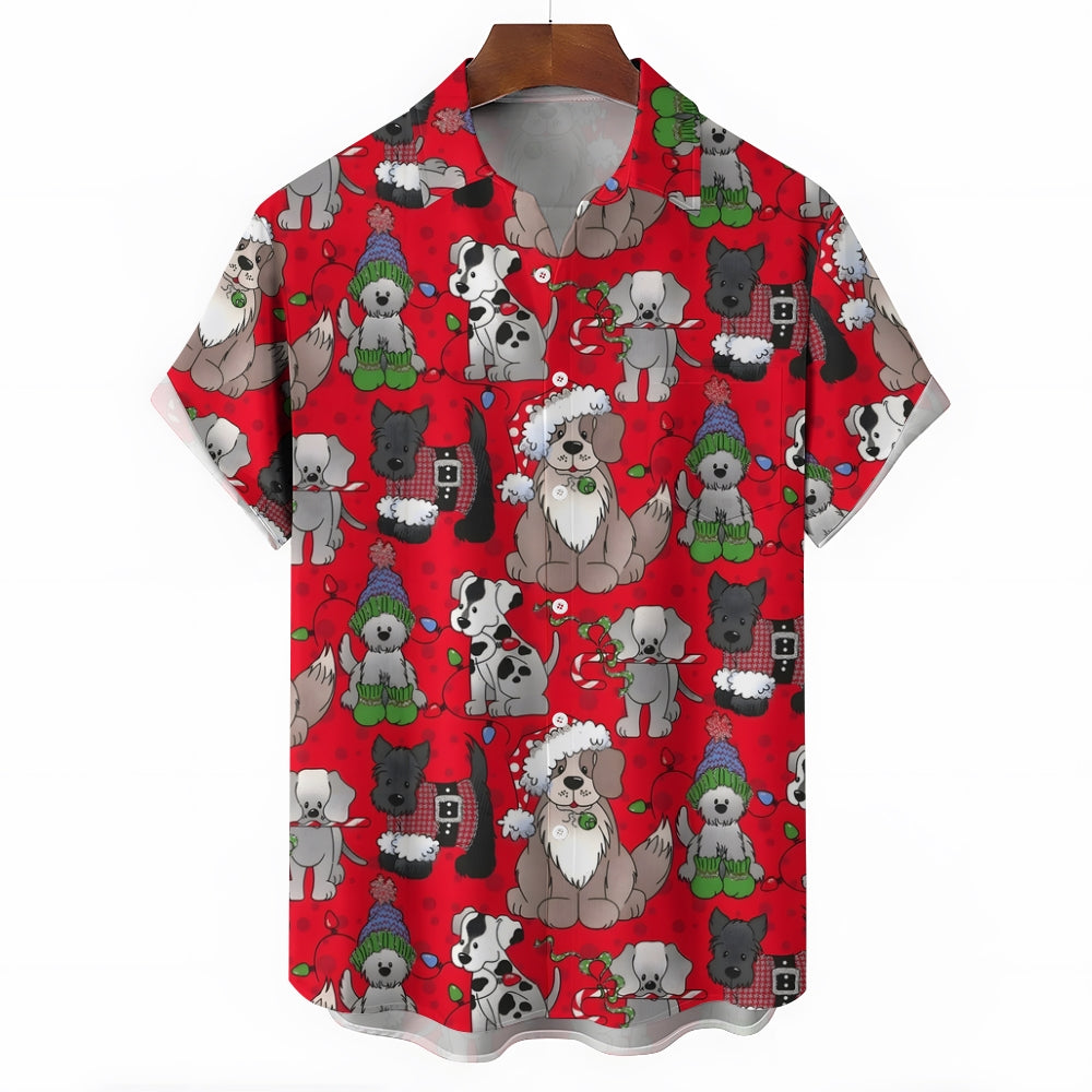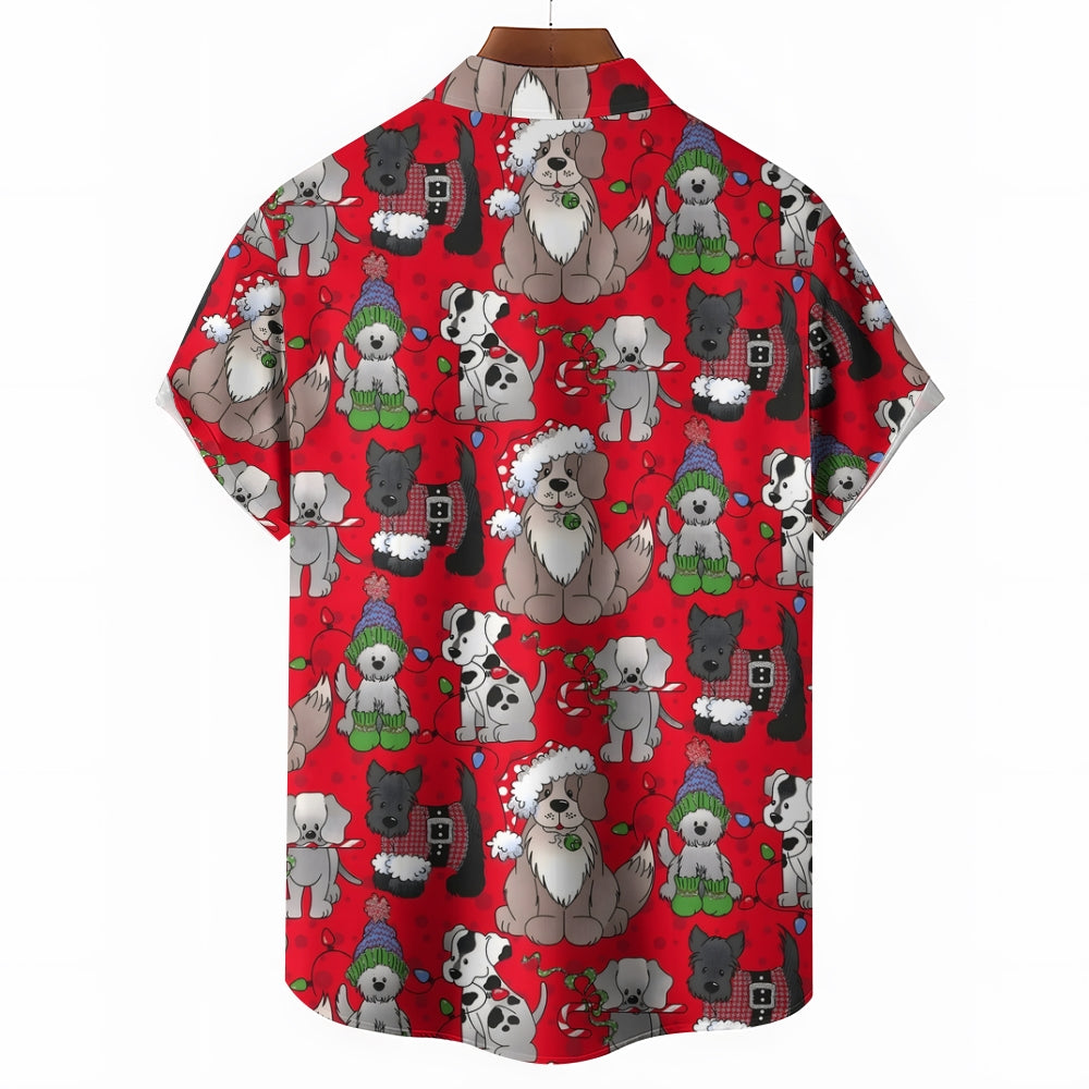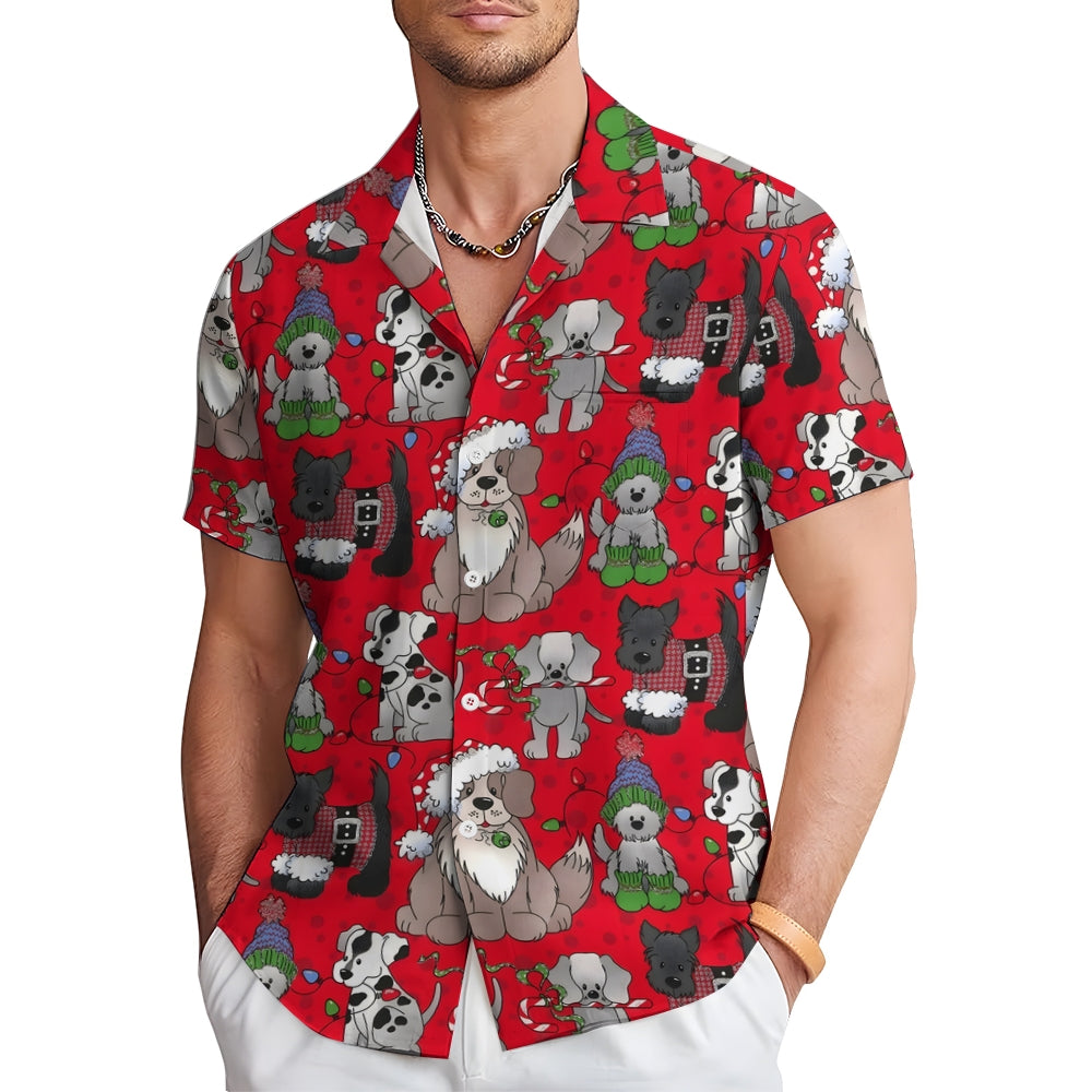 Christmas Lights Puppy Casual Short Sleeve Shirt 2409006144