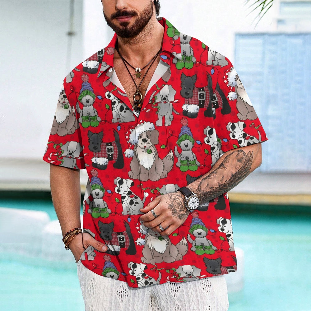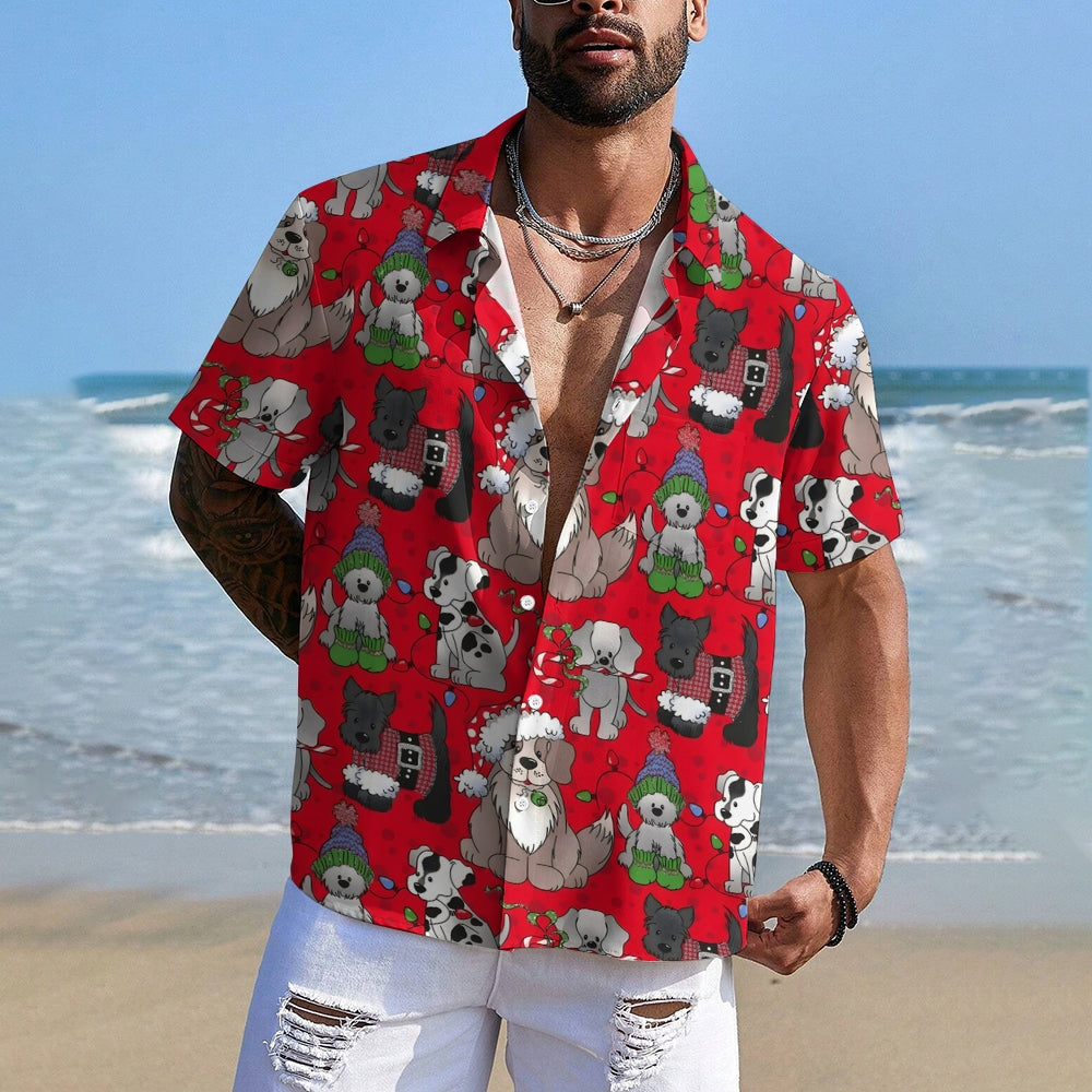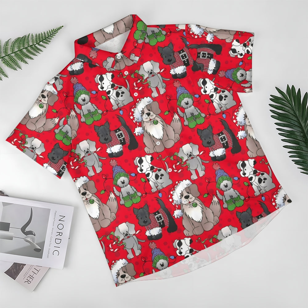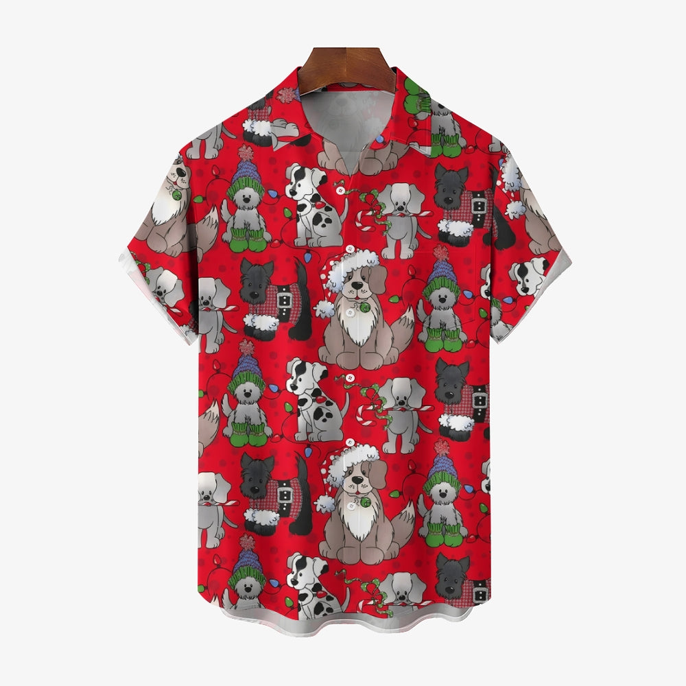 Christmas Lights Puppy Casual Short Sleeve Shirt 2409006144