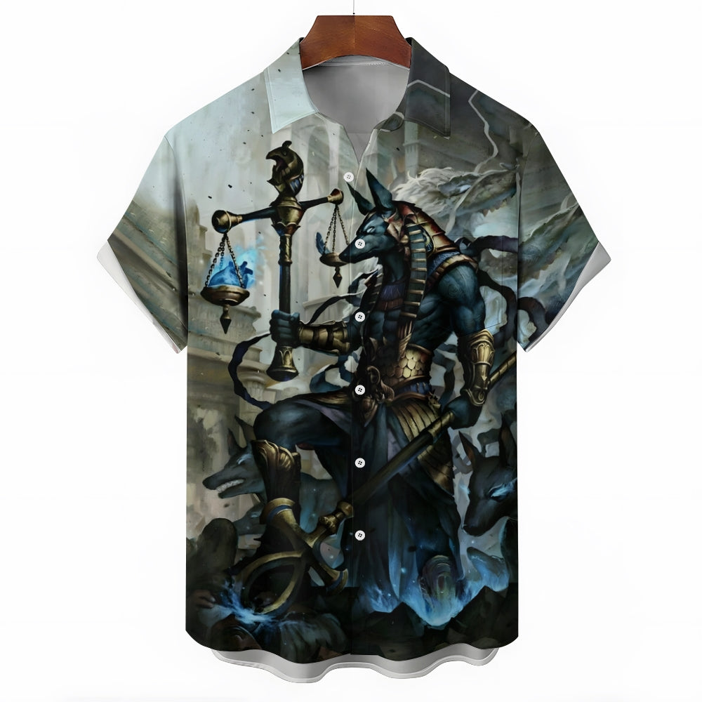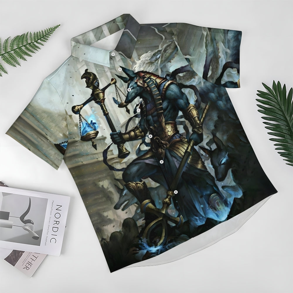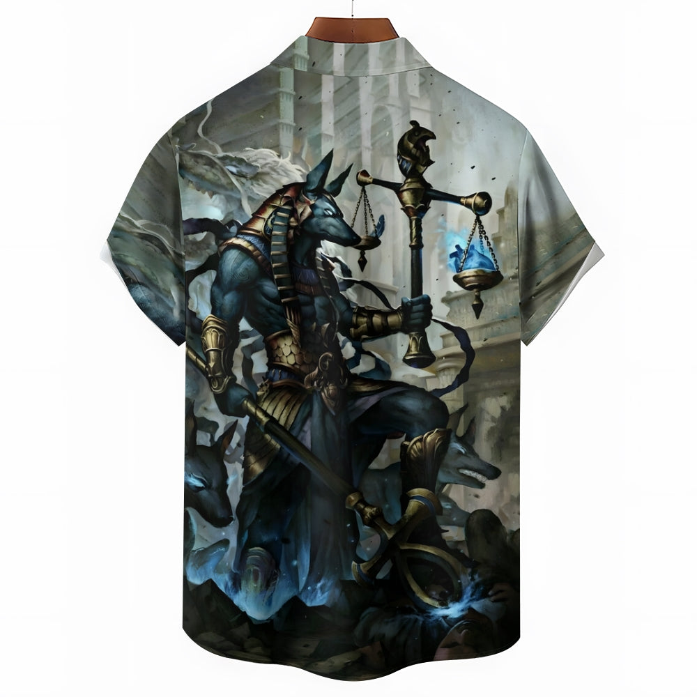 Egyptian Anubis Art Print Casual Short Sleeve Shirt 2409004543