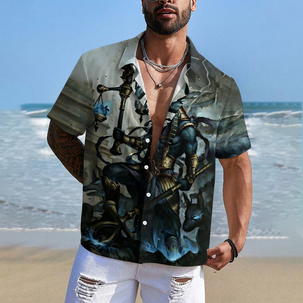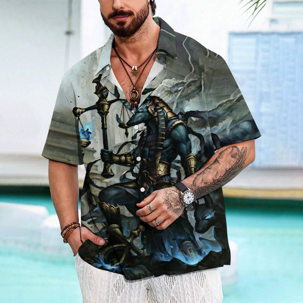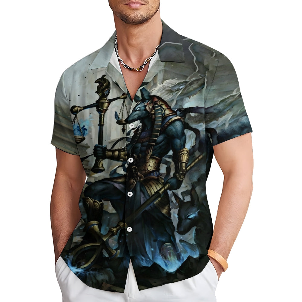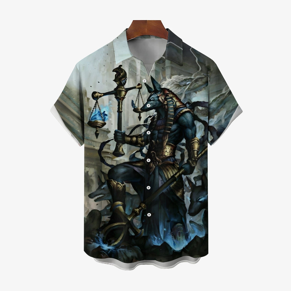 Egyptian Anubis Art Print Casual Short Sleeve Shirt 2409004543