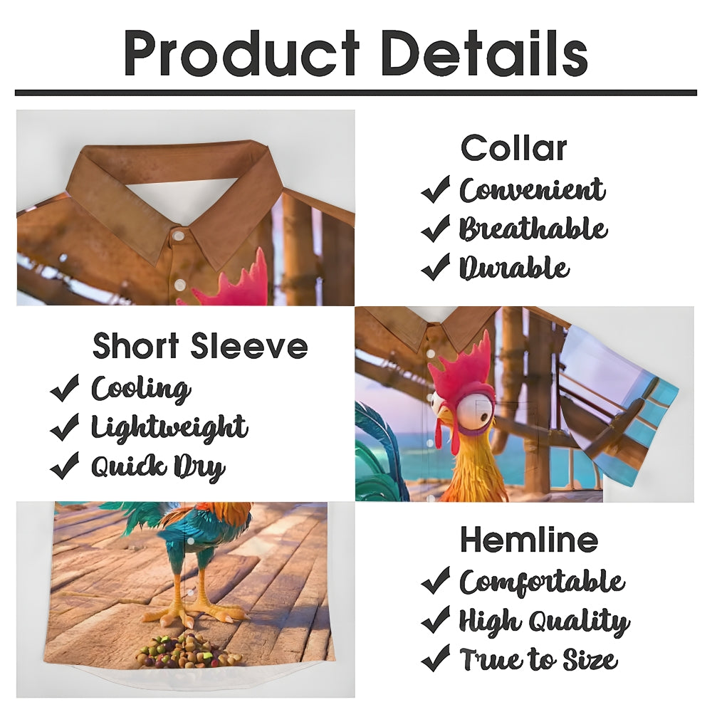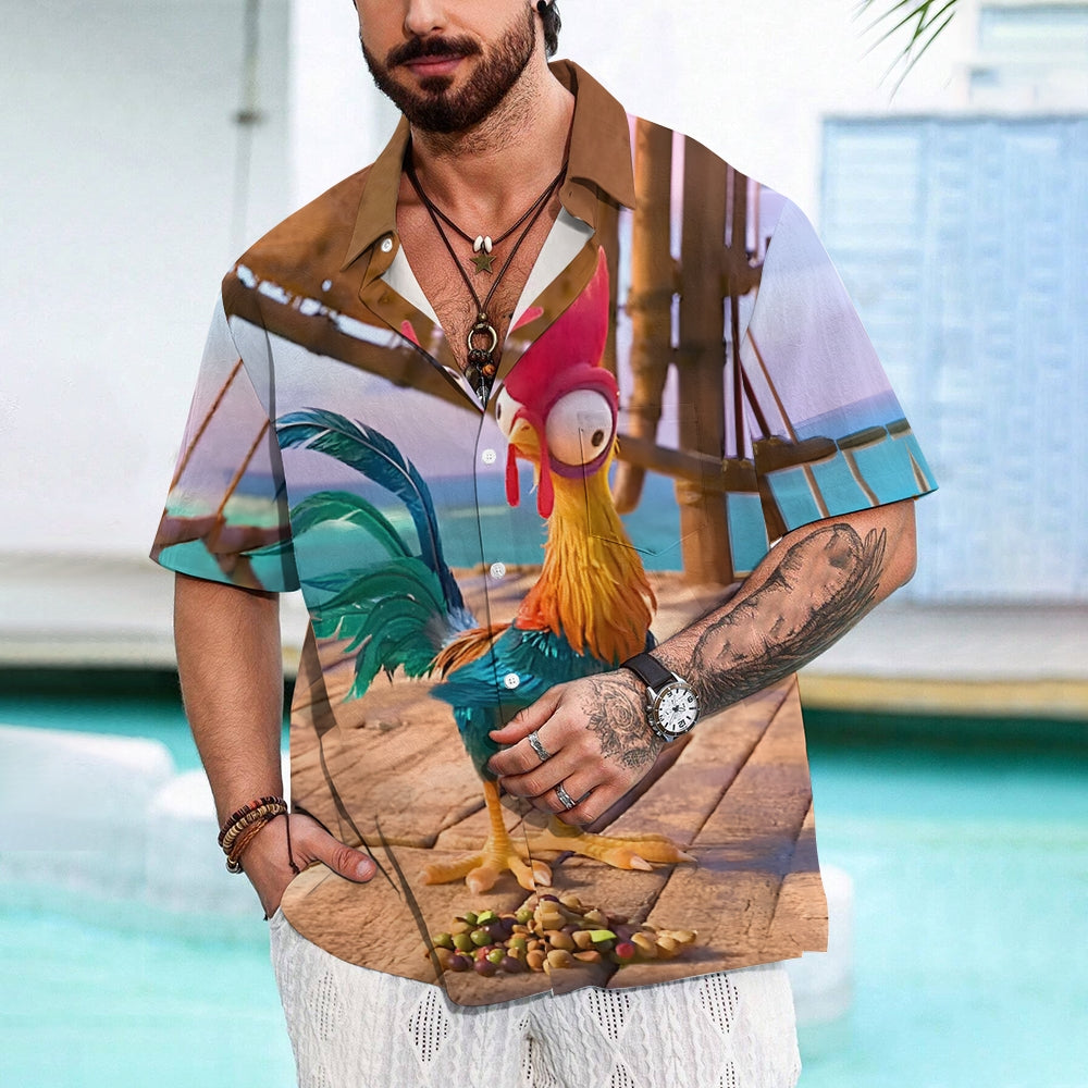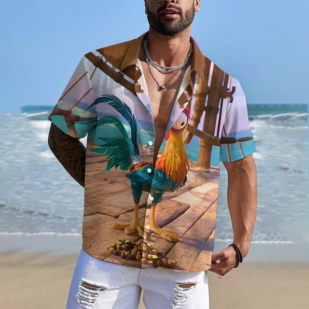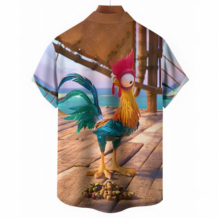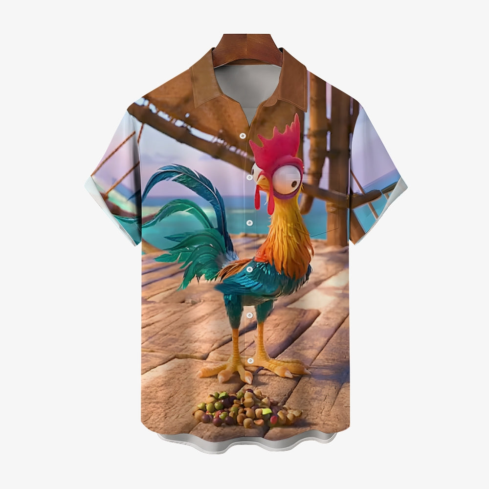 Funny Rooster Eating Print Casual Short Sleeve Shirt 2410001921