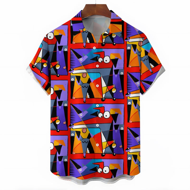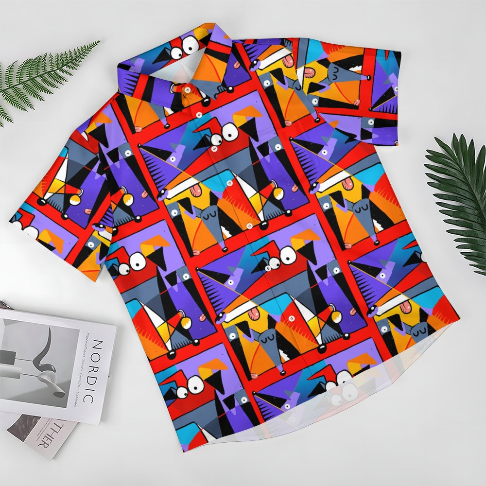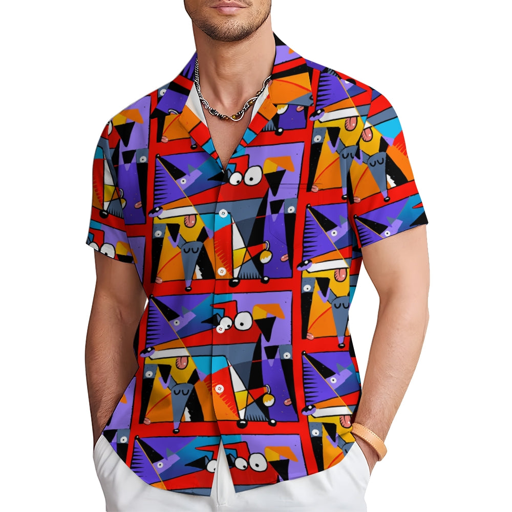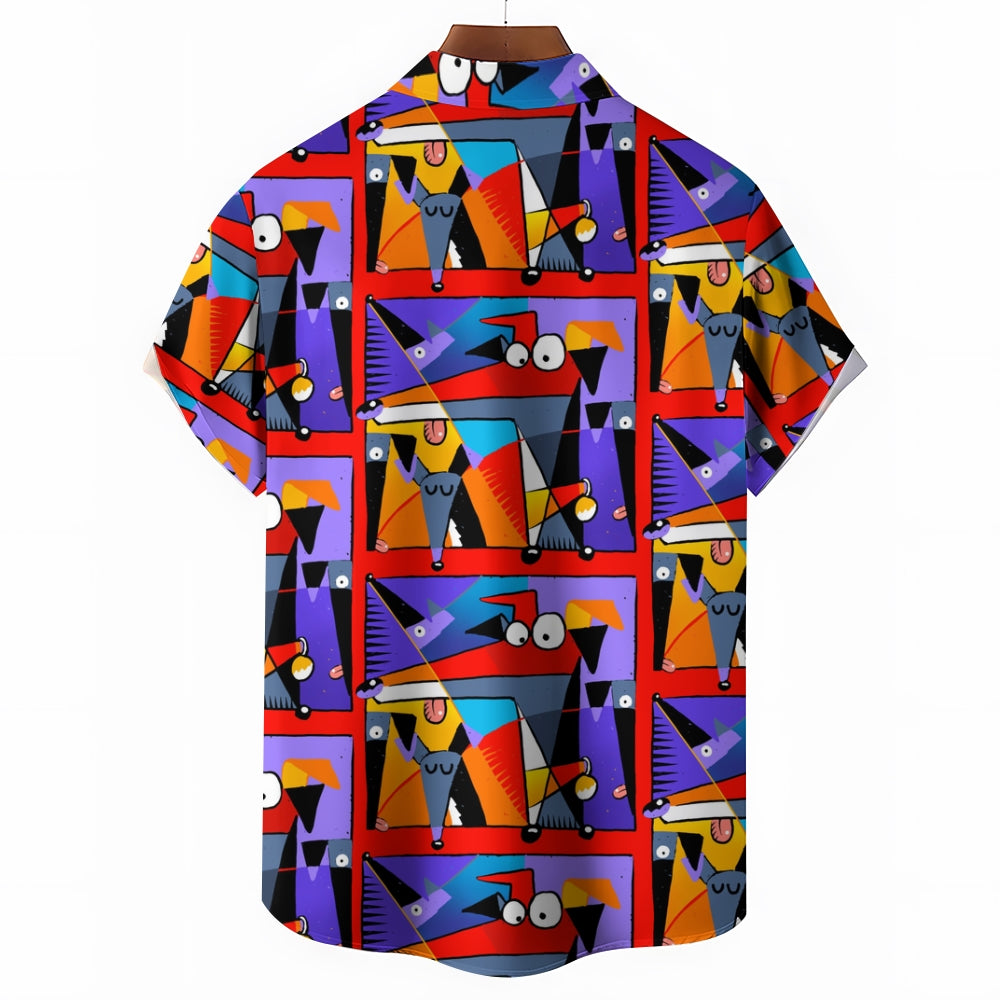 Geometric Hound Print Casual Short Sleeve Shirt 2409001584