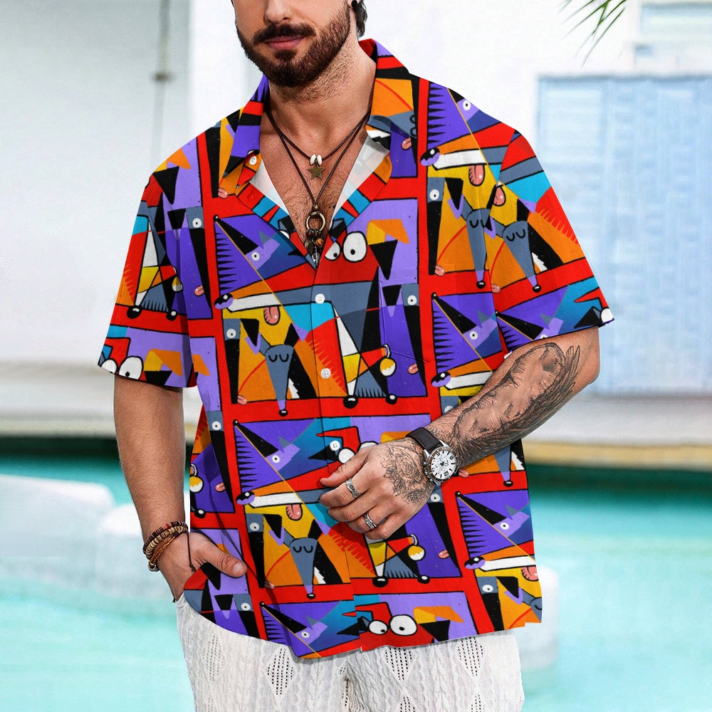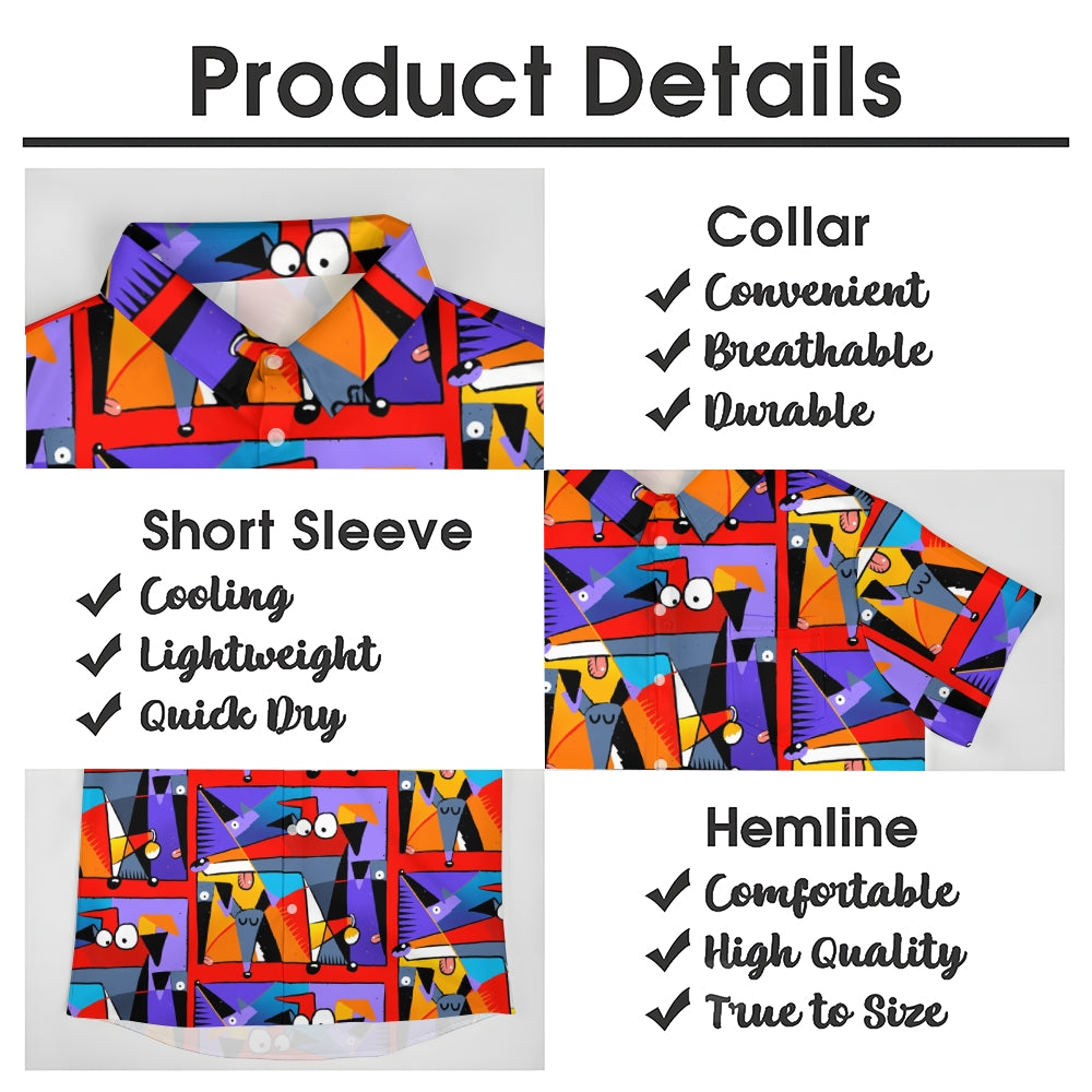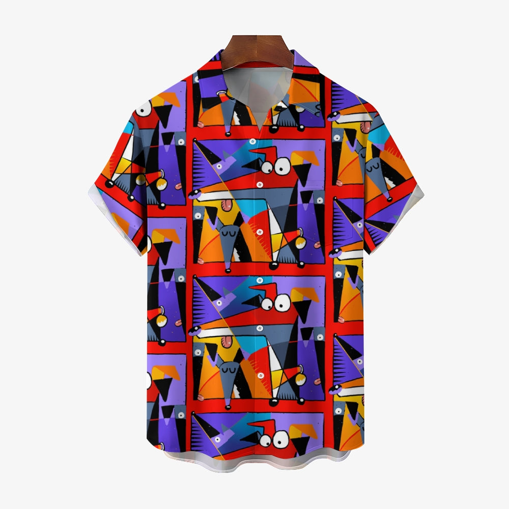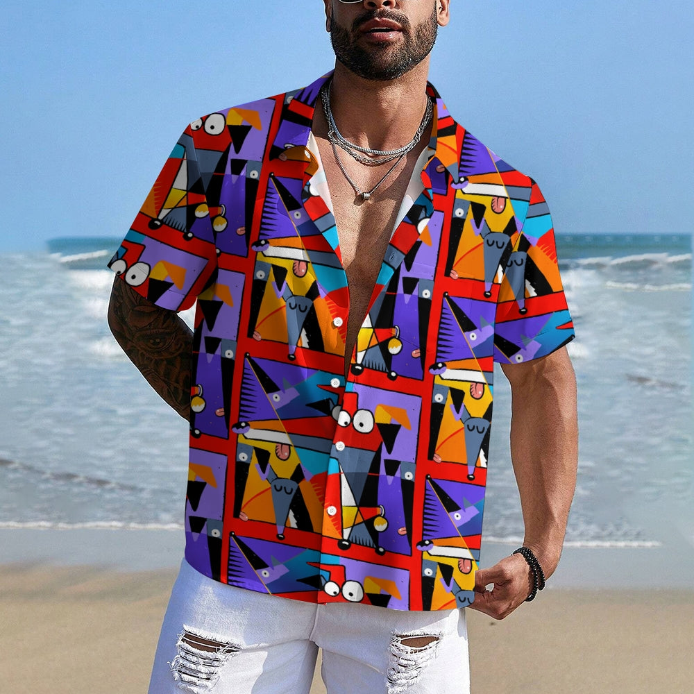 Geometric Hound Print Casual Short Sleeve Shirt 2409001584