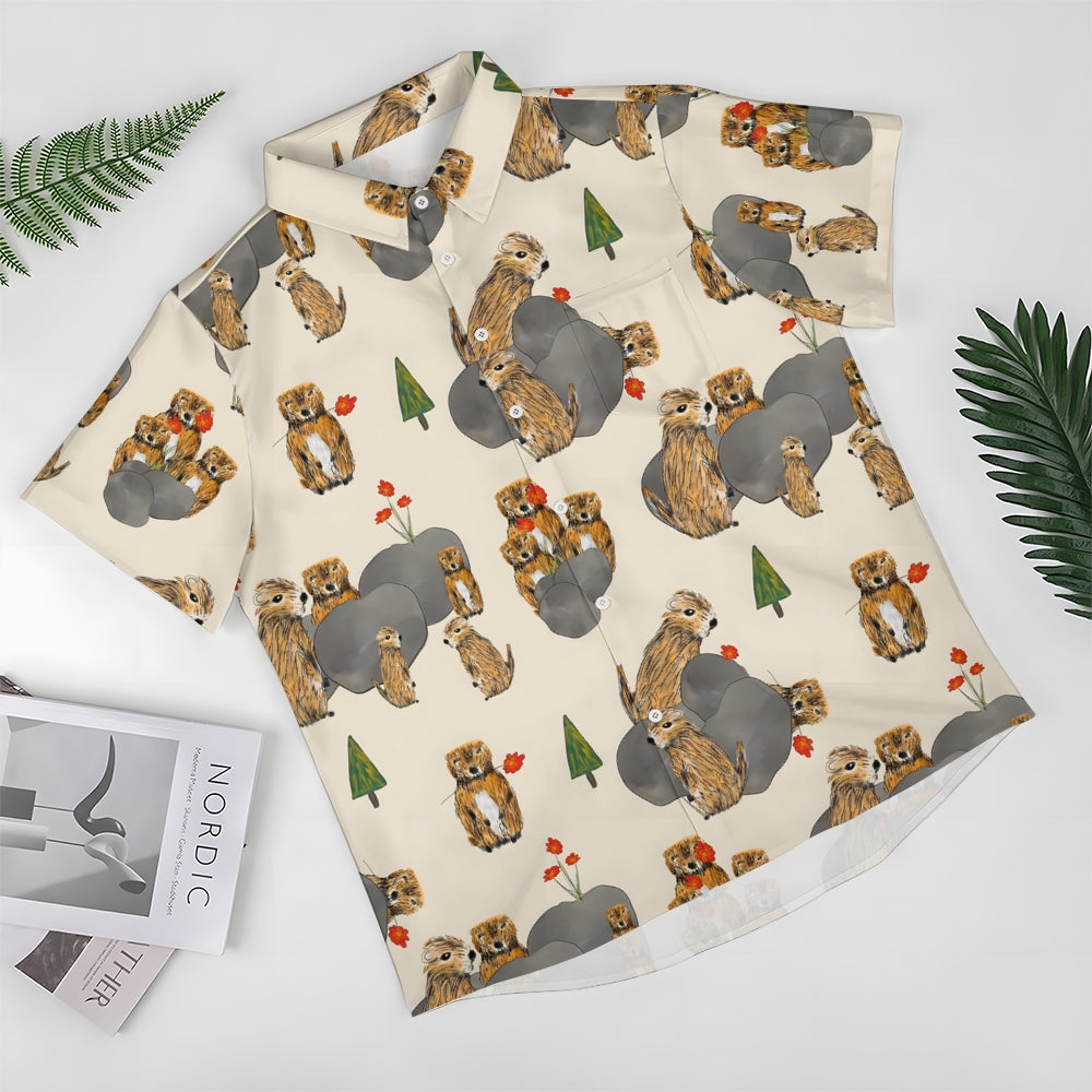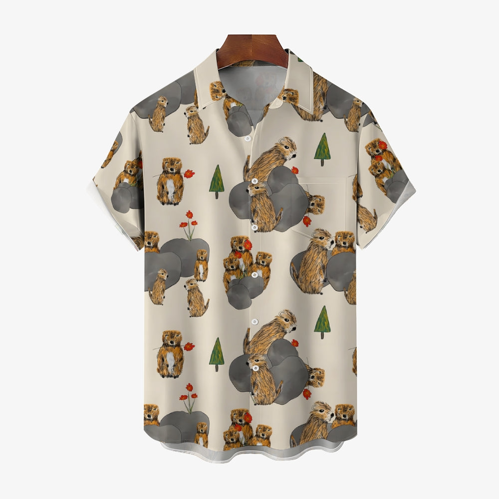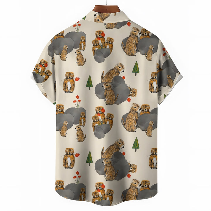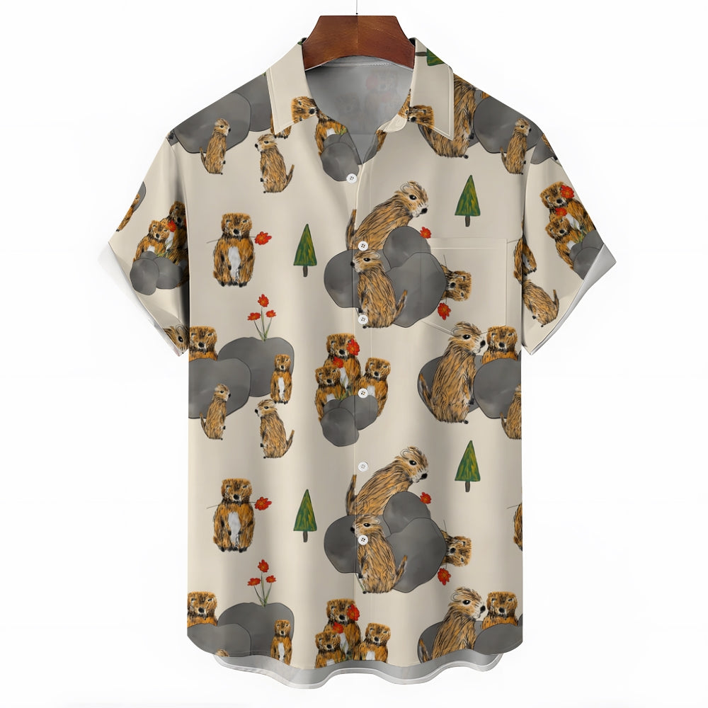 Groundhog Day Groundhogs Print Casual Short Sleeve Shirt 2412003821
