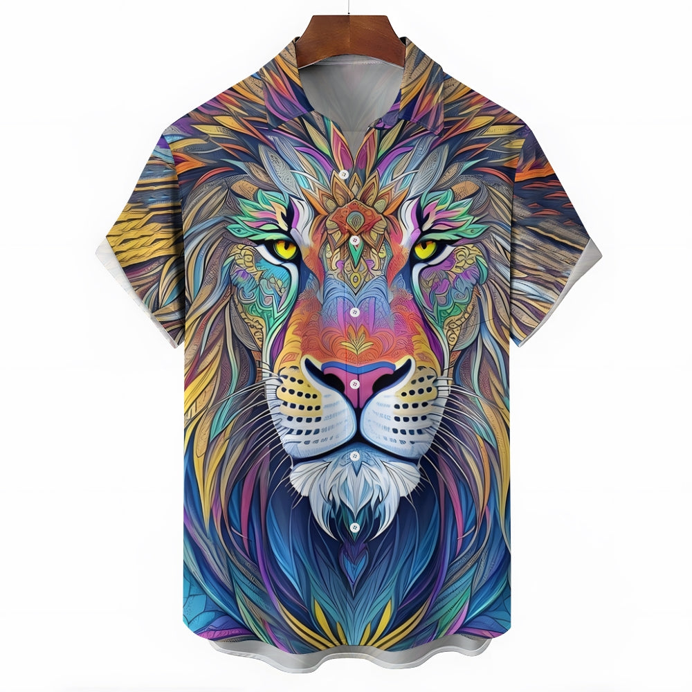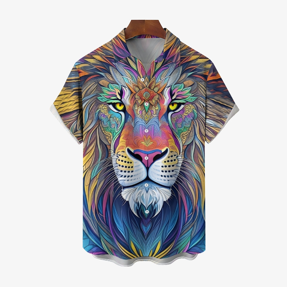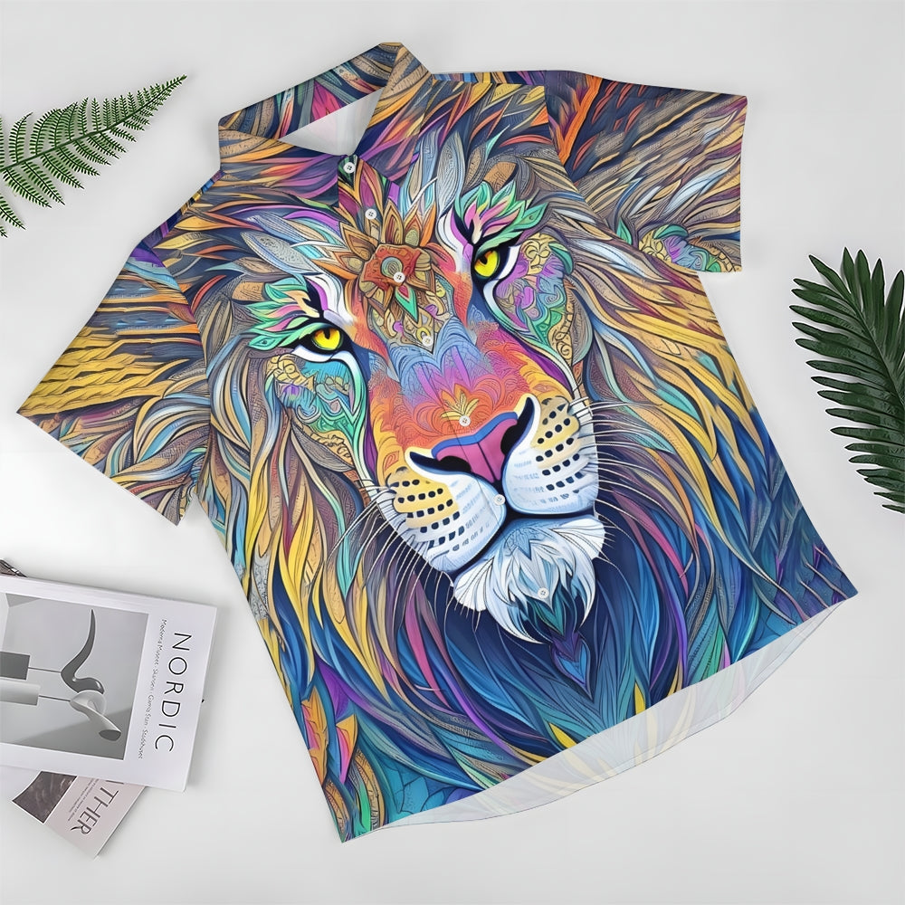 Hawaiian Shirts Rainbow Lion Print Aloha Shirts 2409004961