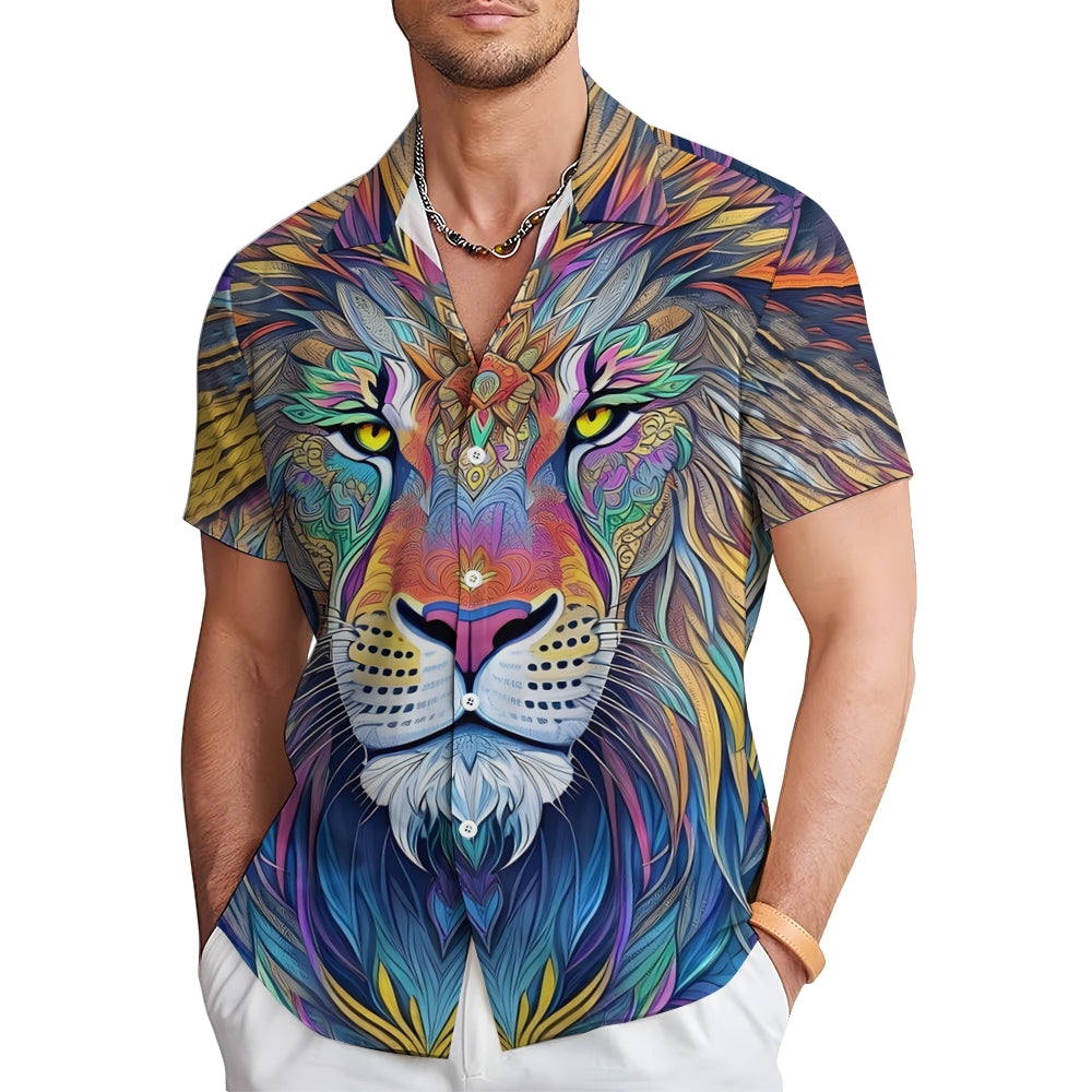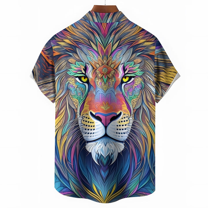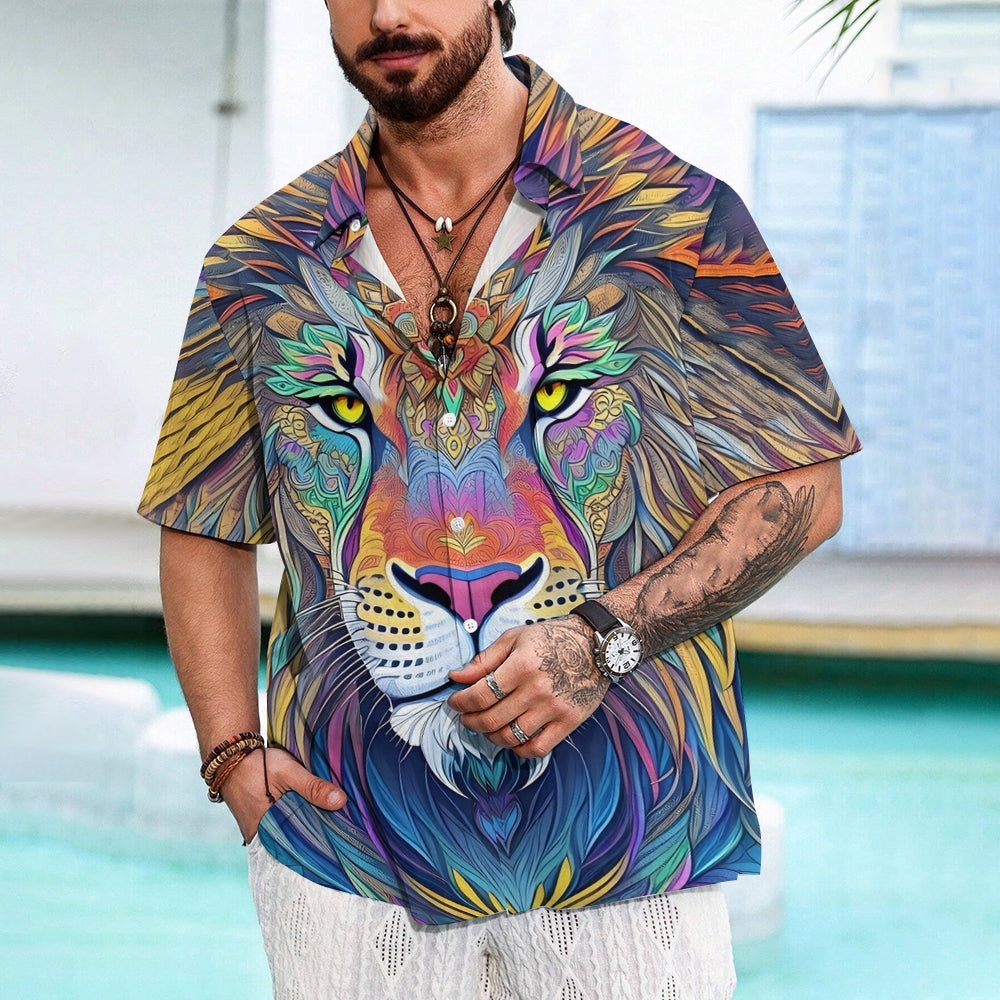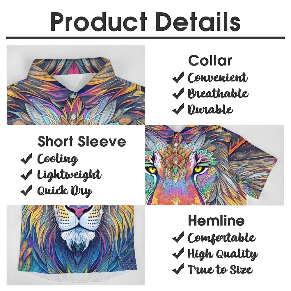 Hawaiian Shirts Rainbow Lion Print Aloha Shirts 2409004961