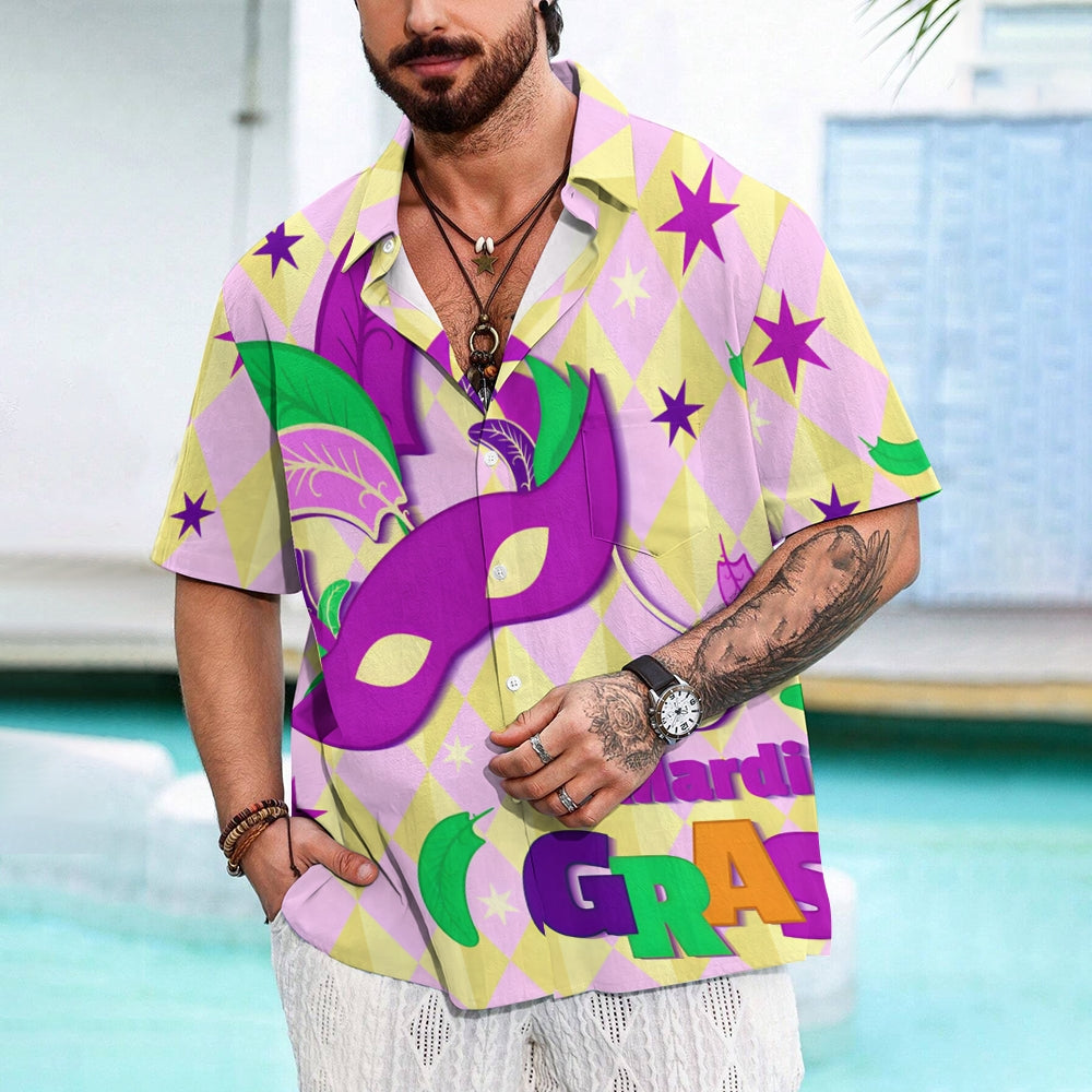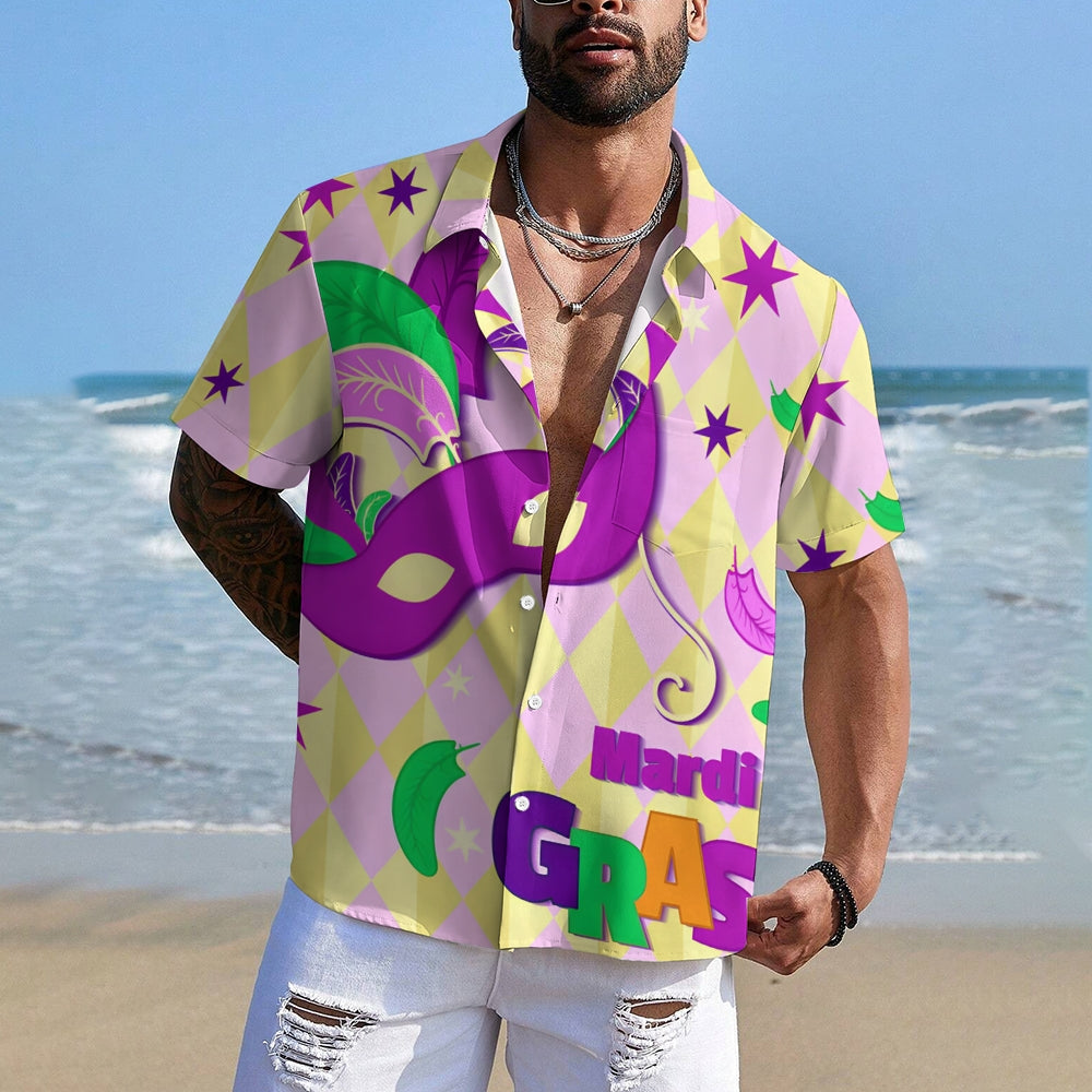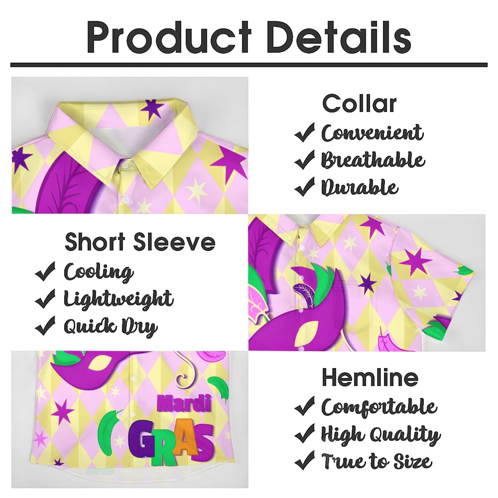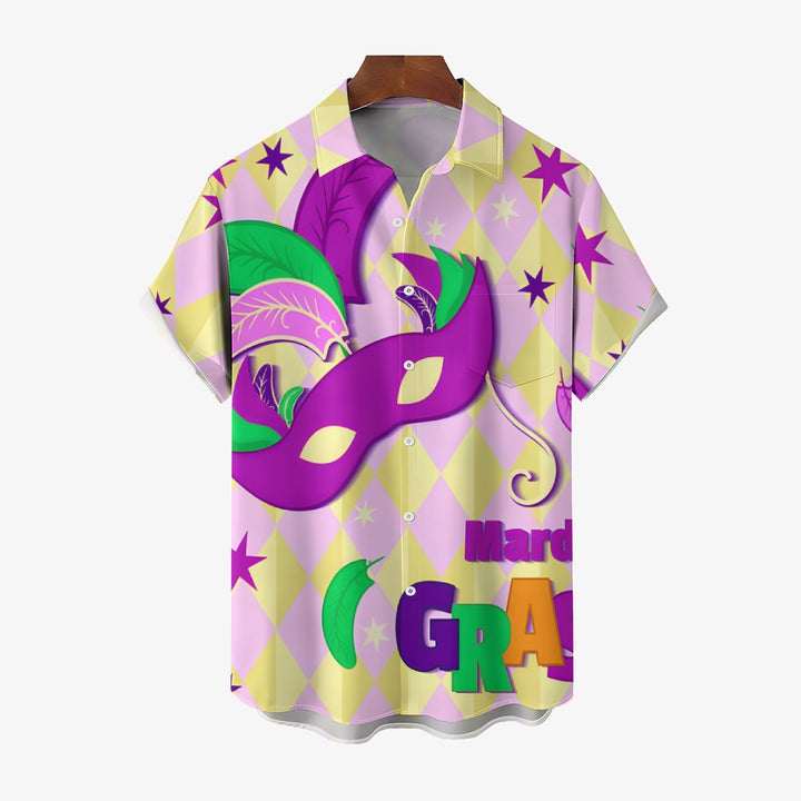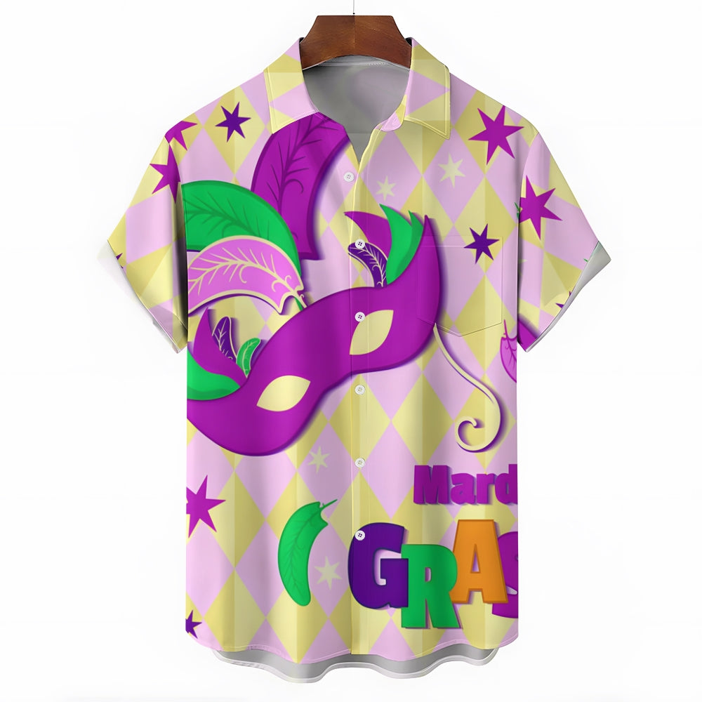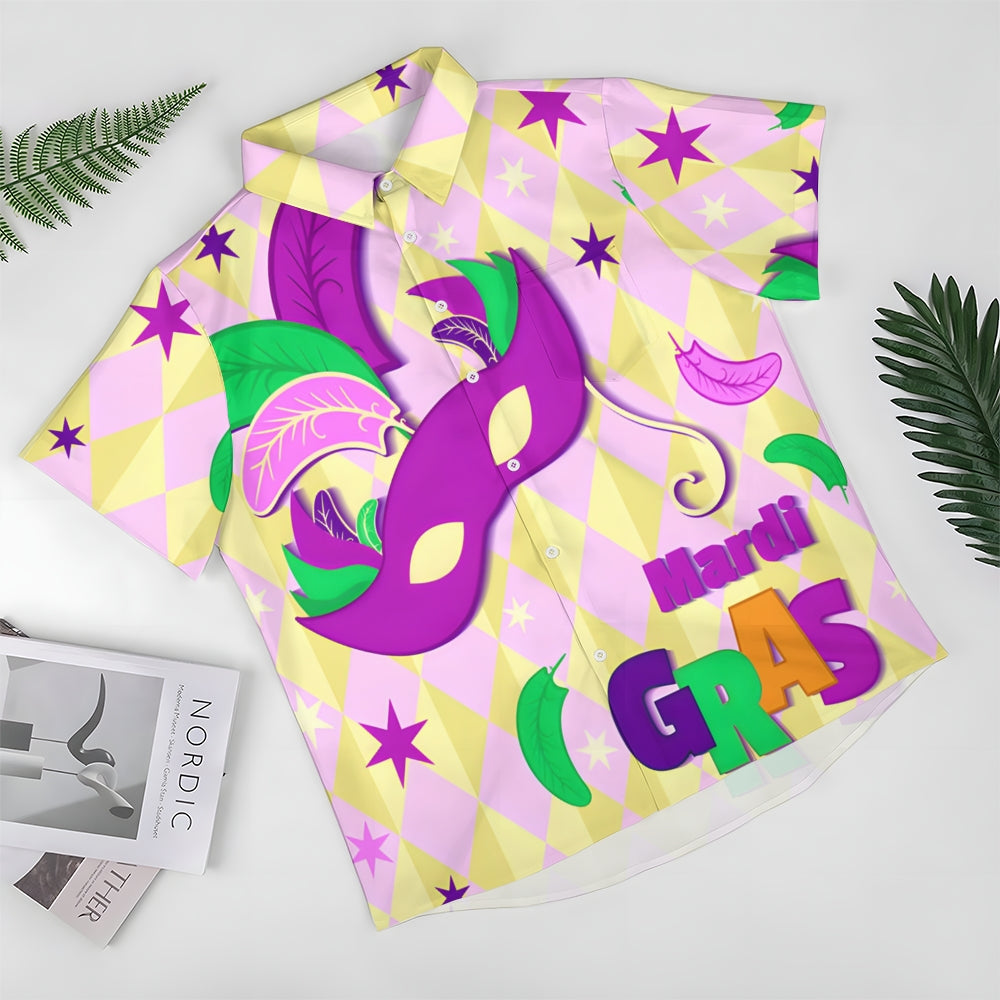 Mardi Gras Mask Geometric Print Casual Short Sleeve Shirt 2412002269