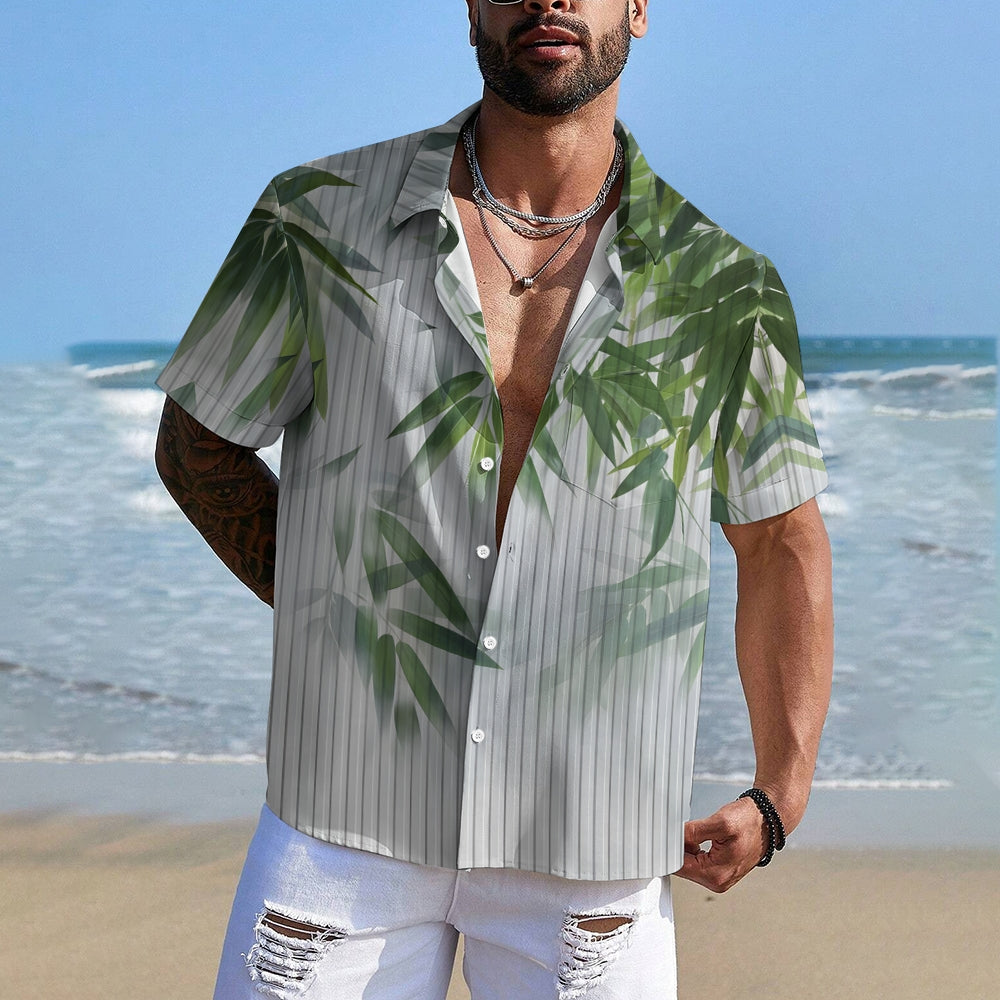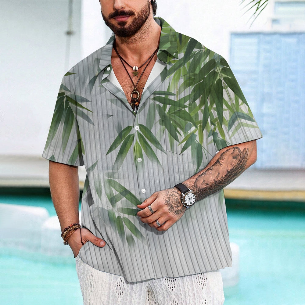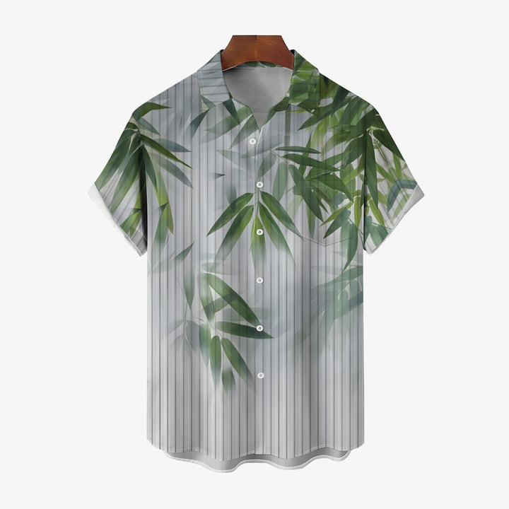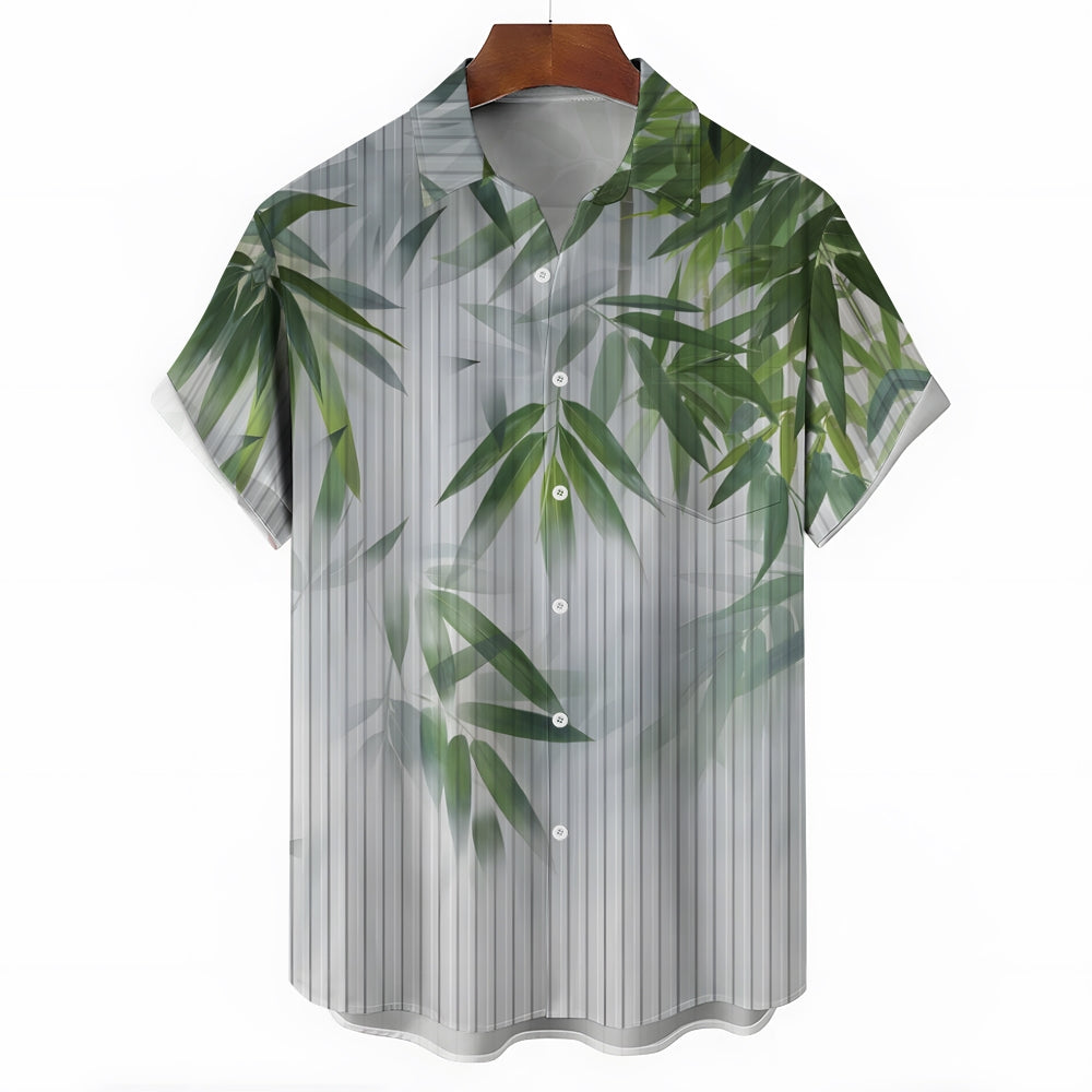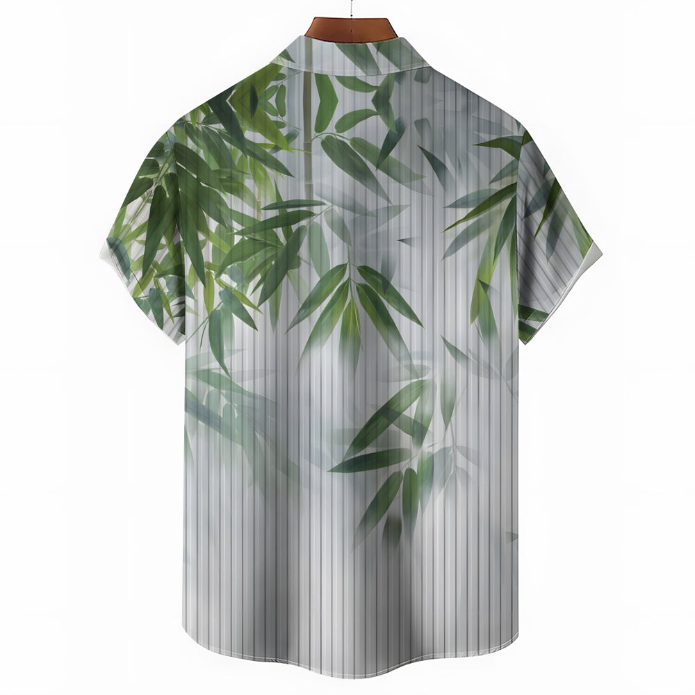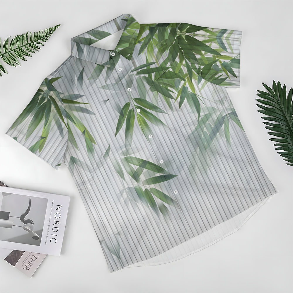 Men's Bamboo Leaf Reflection Glass Print Short Sleeve Shirt 2412002236