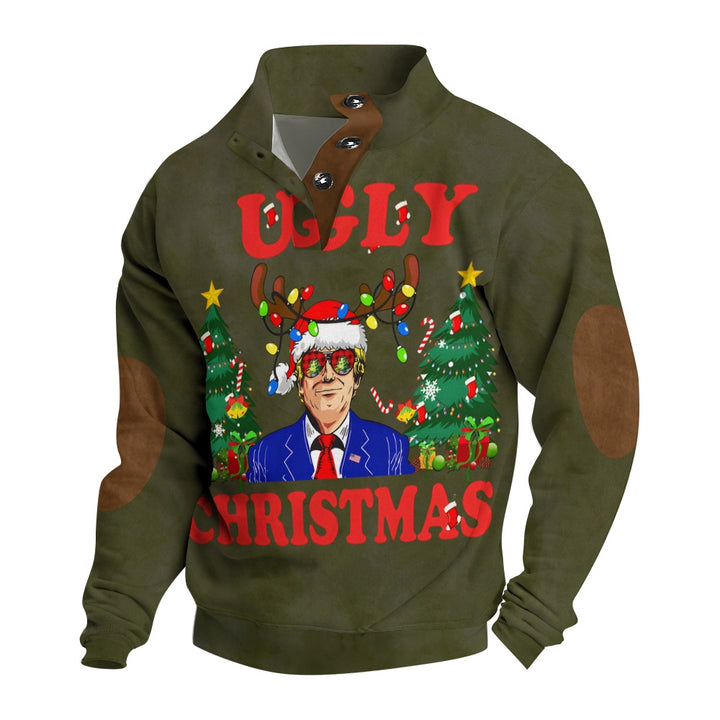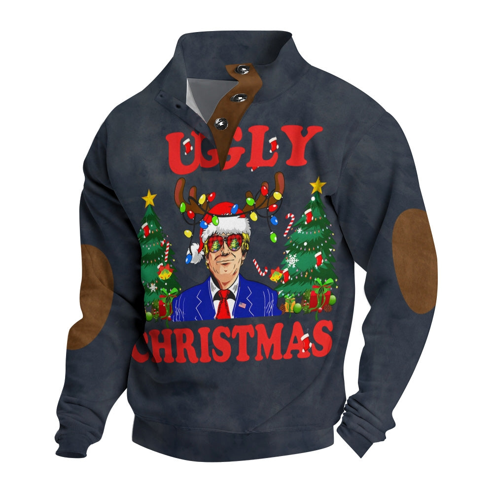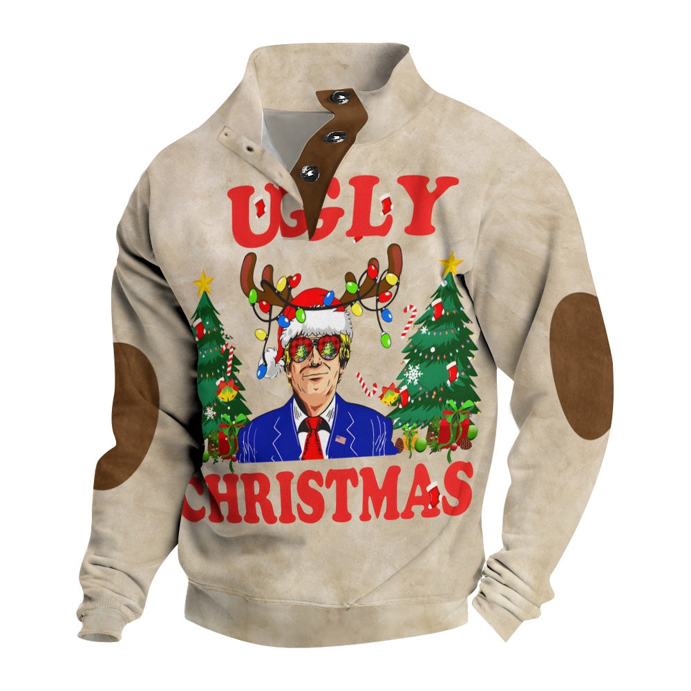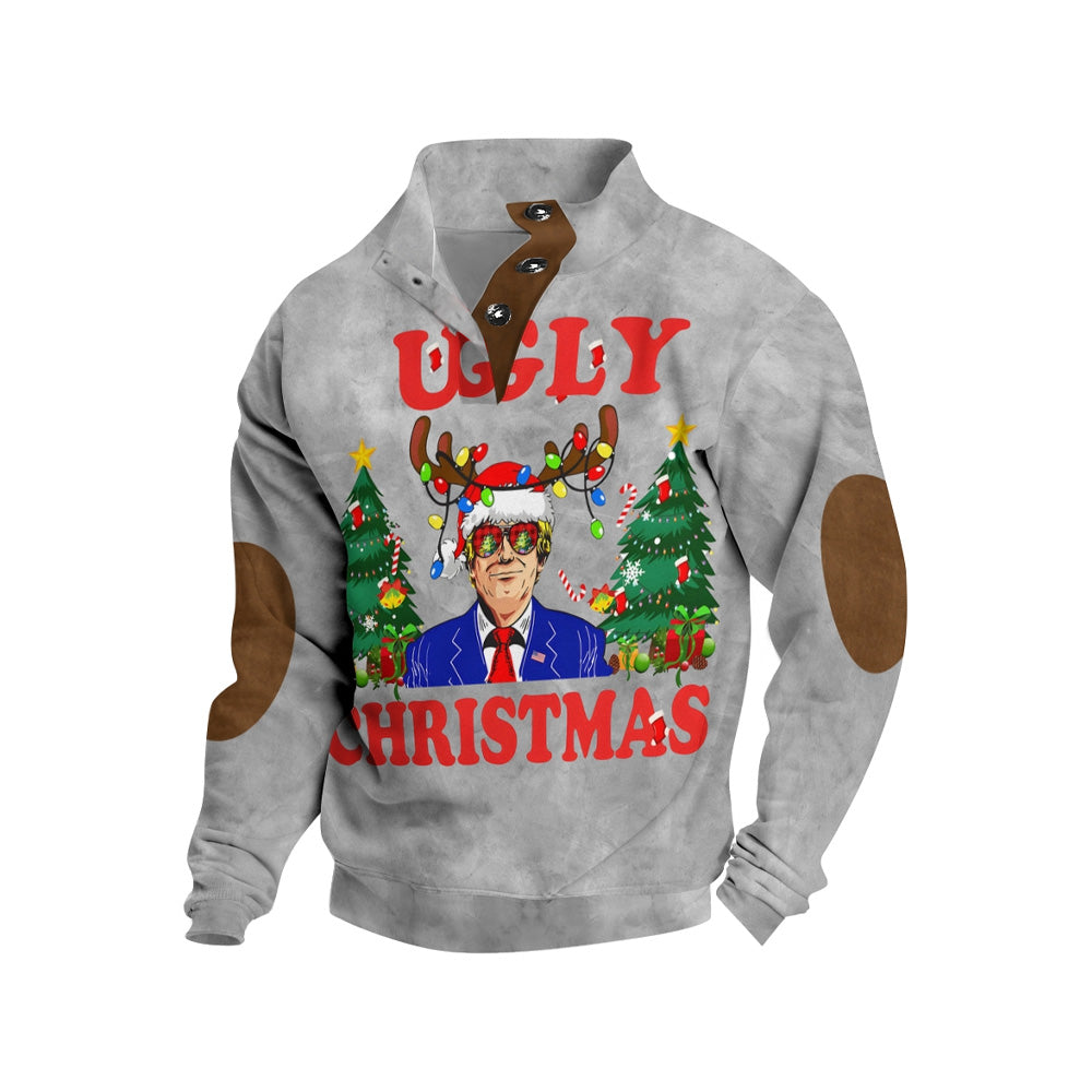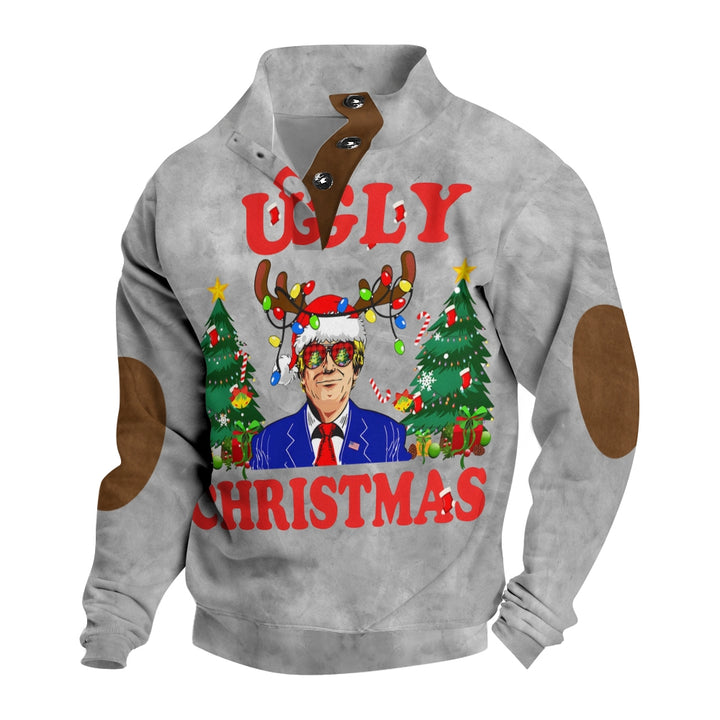 Men's Button Christmas Trump Antlers Lights Printed Casual Long Sleeve Sweatshirt 2411003814