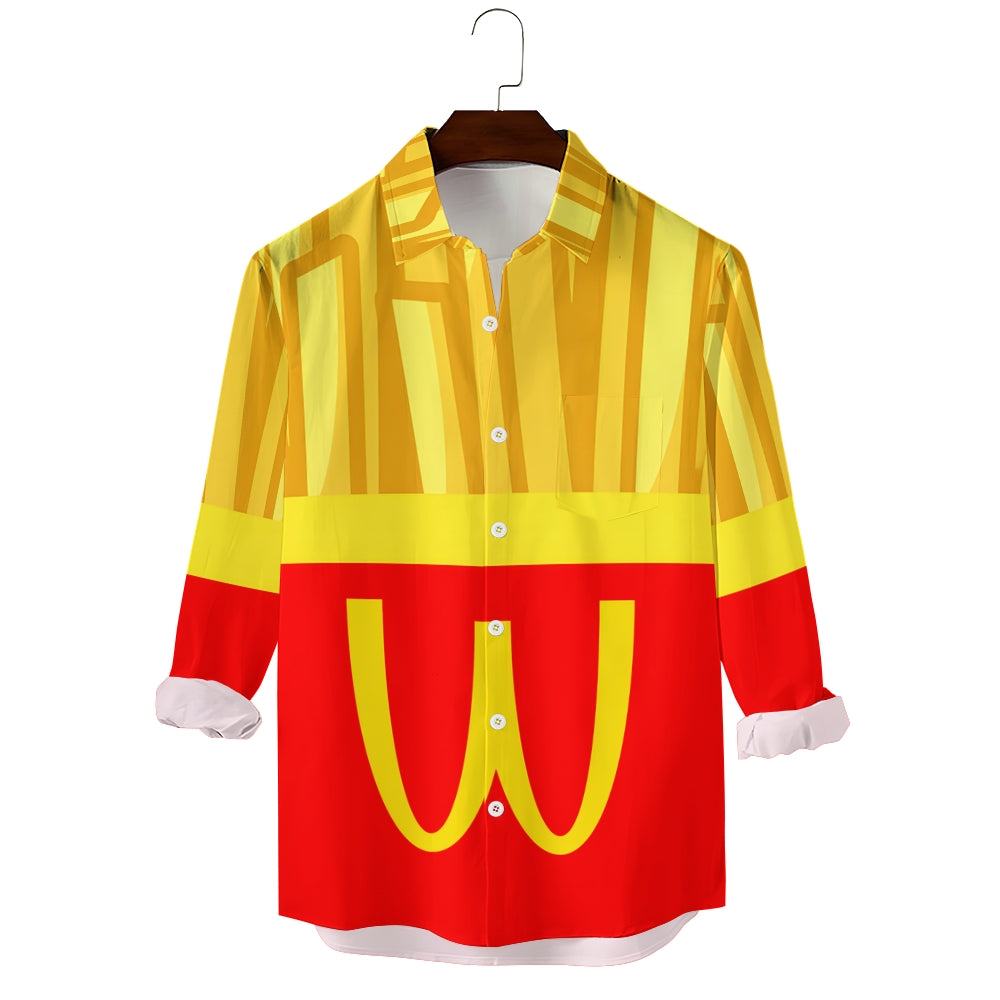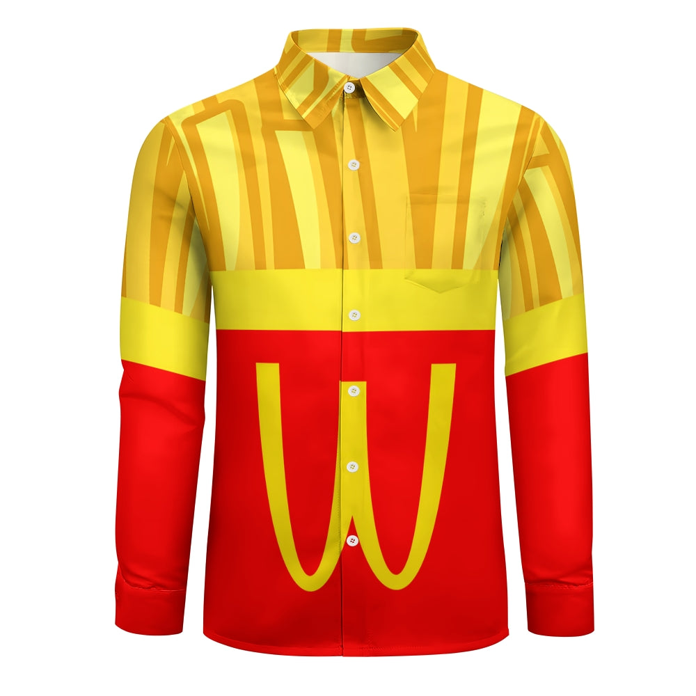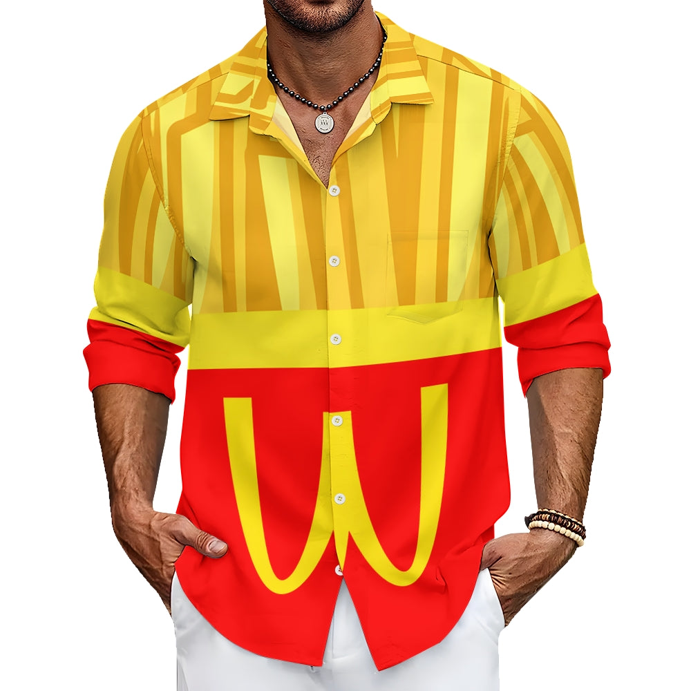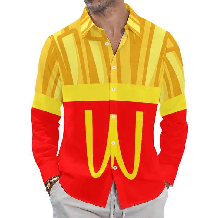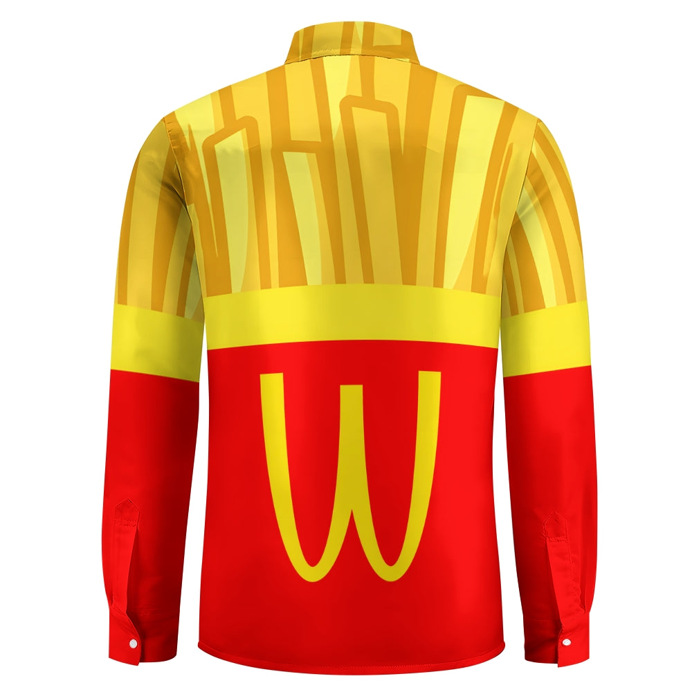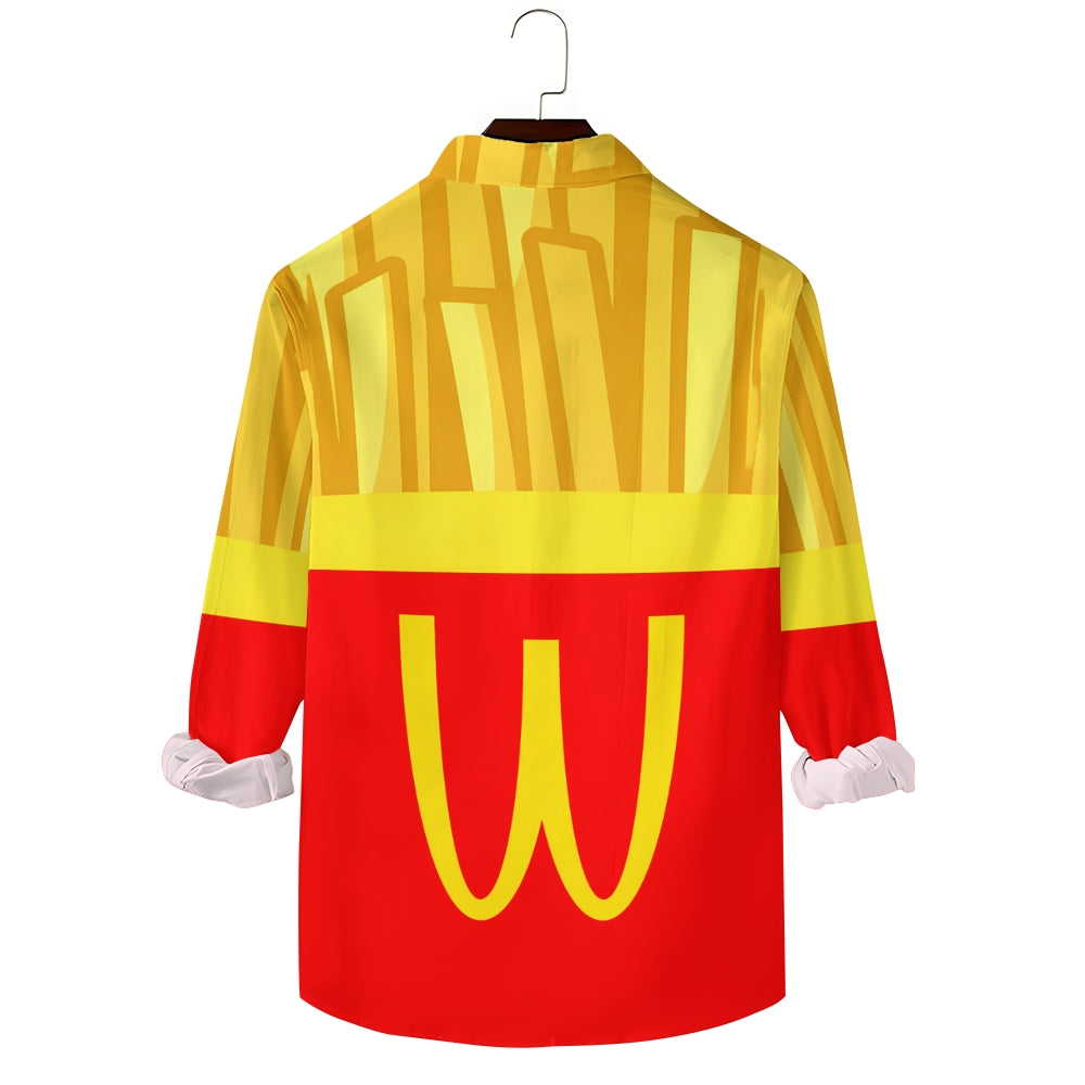 Men's Casual Fast Food French Fries Print Long Sleeve Shirt 2411002591