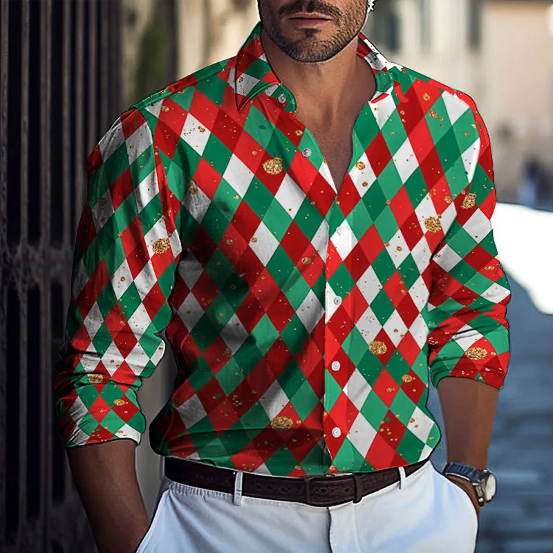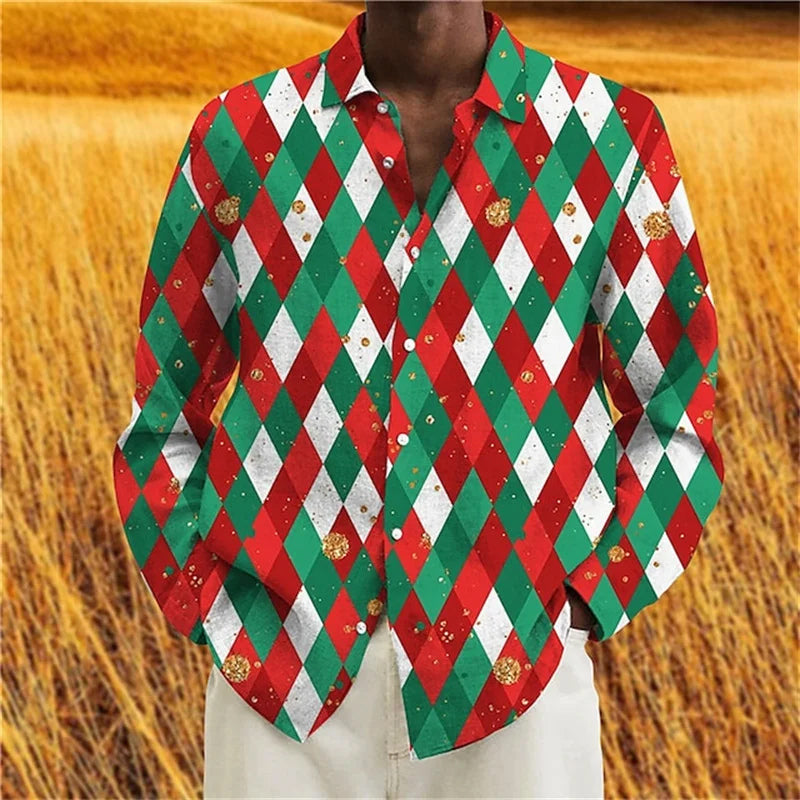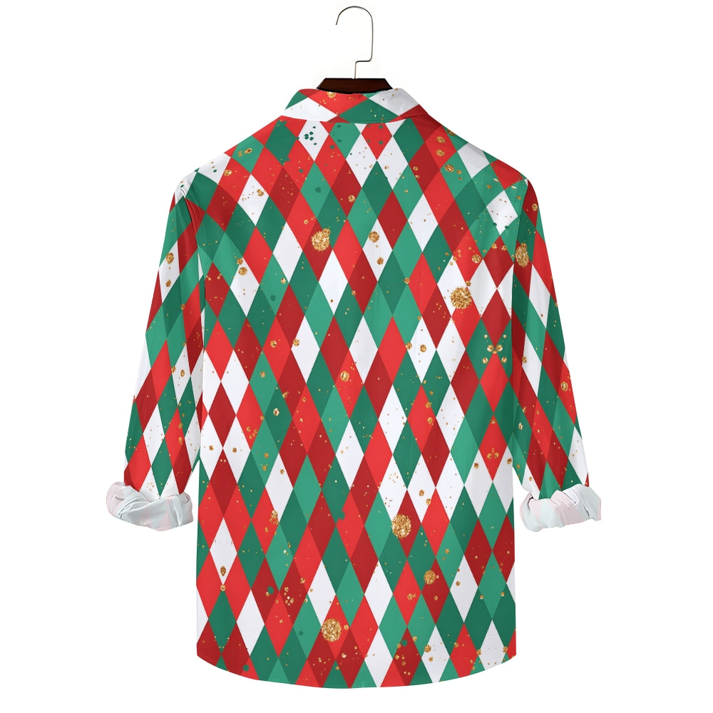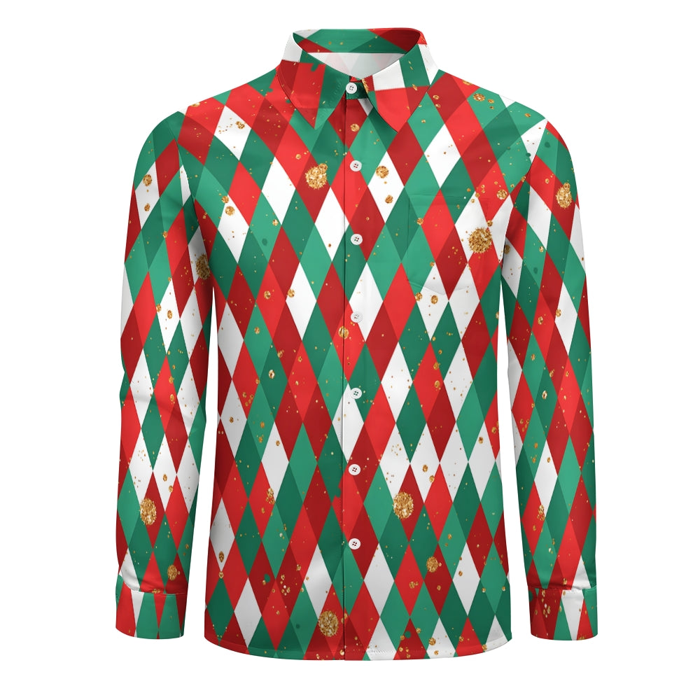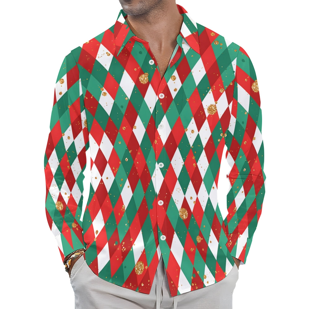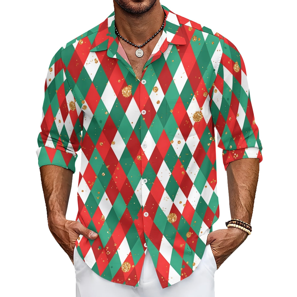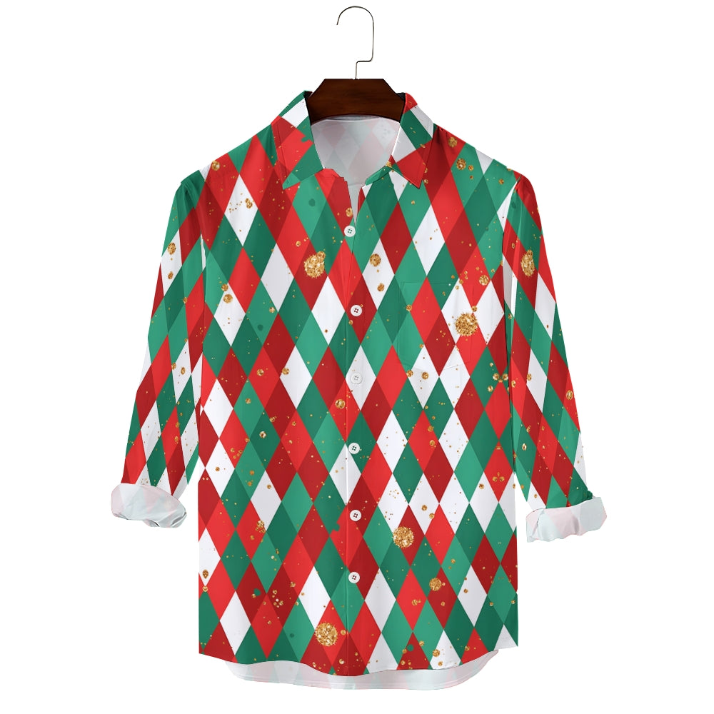 Men's Christmas Print Long-sleeved Shirt 2409005628