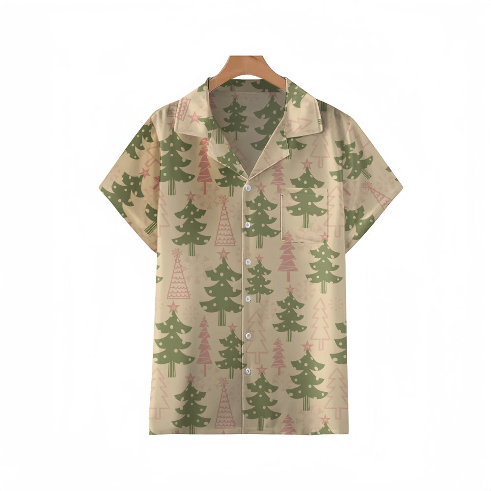 Men's Christmas Tree Casual Cuban Collar Short Sleeve Shirt 2410006010