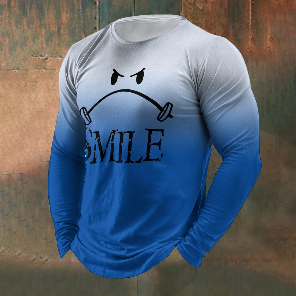 Men's Crew Neck Funny Smile Print Long Sleeve T-Shirt 2411002503