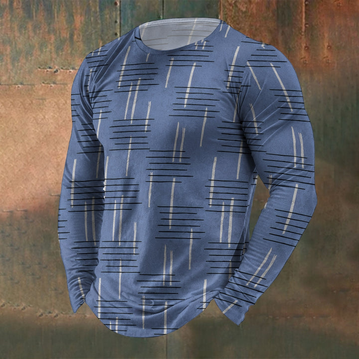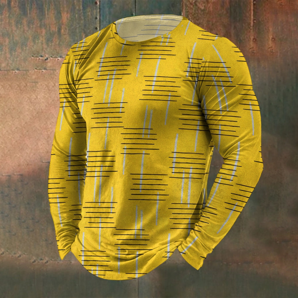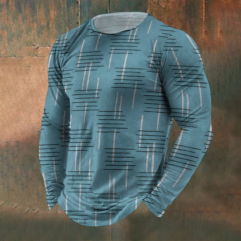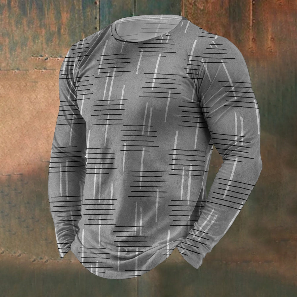 Men's Crew Neck Vintage Texture Stripe Print Long Sleeve T-Shirt 2411002550