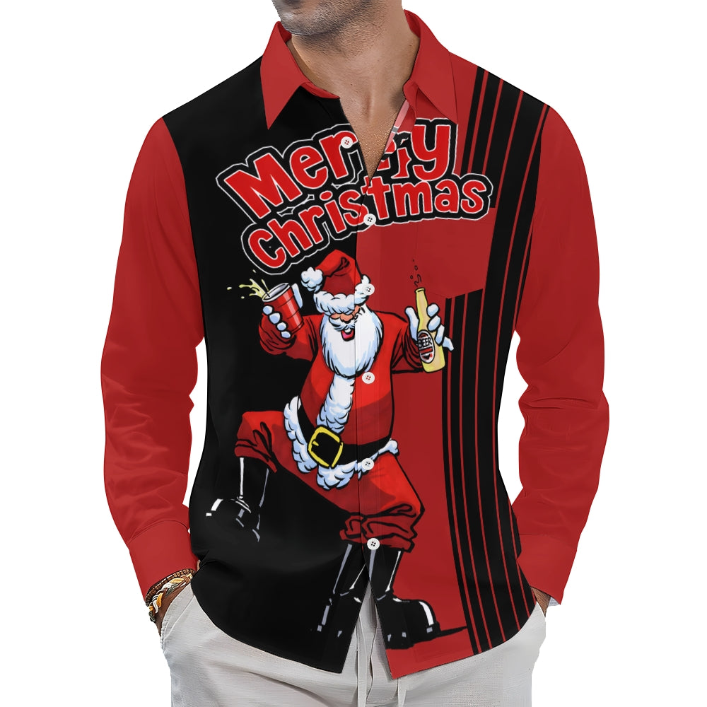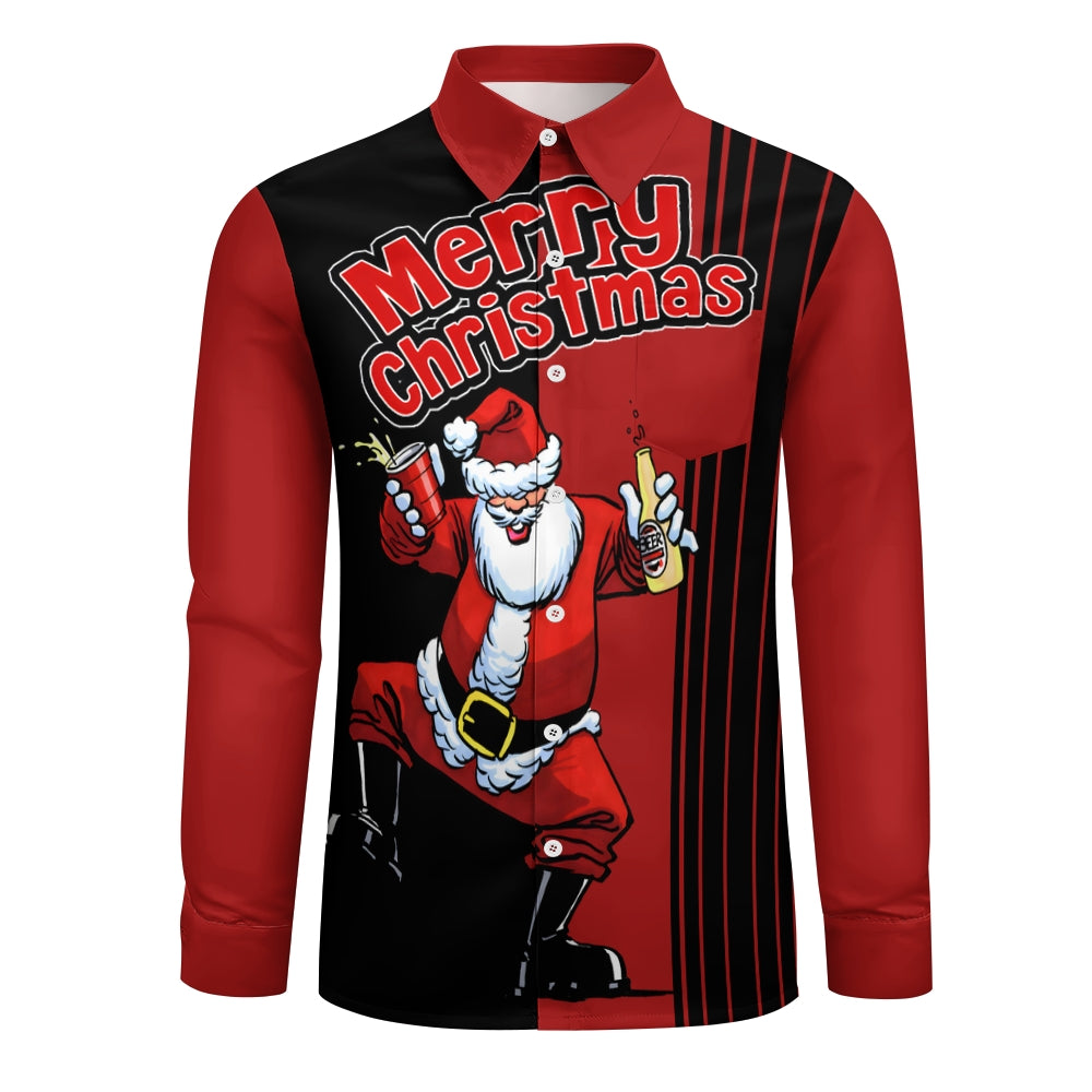 Men's Drink With Father Christmas Printed Long Sleeve Shirt