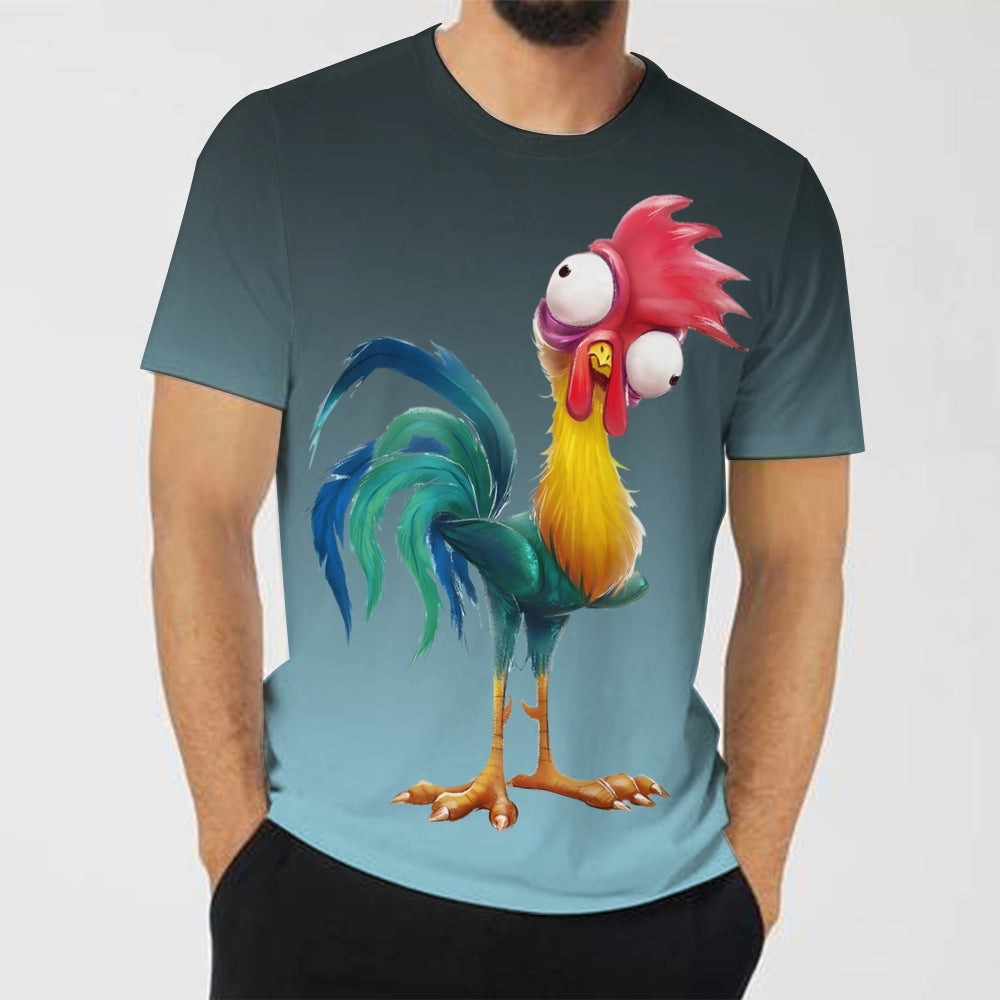 Men's Gradient Fun Rooster Casual Short Sleeve T-Shirt