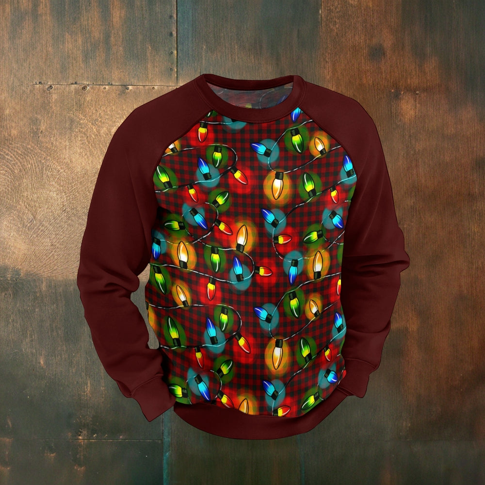 Men's Raglan Holiday Lights Print Long Sleeve Sweatshirt 2411002399