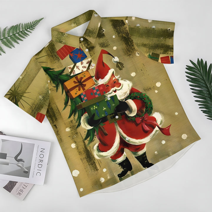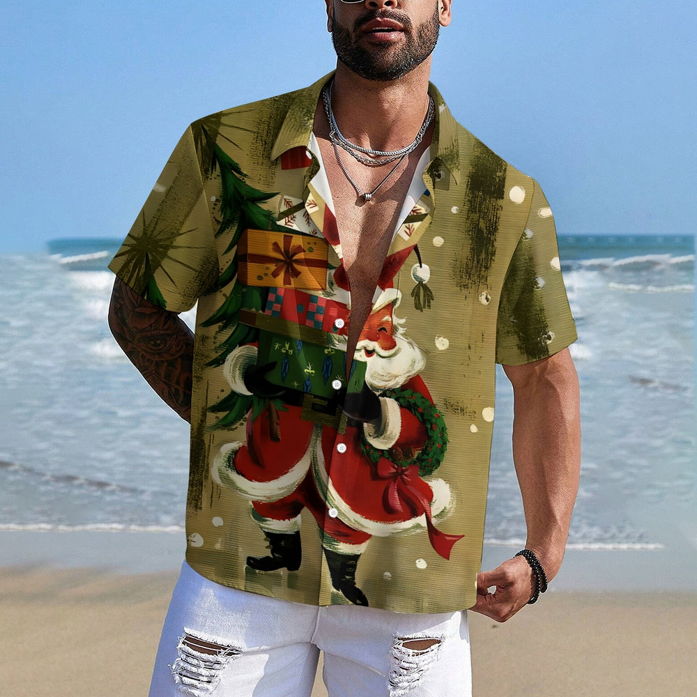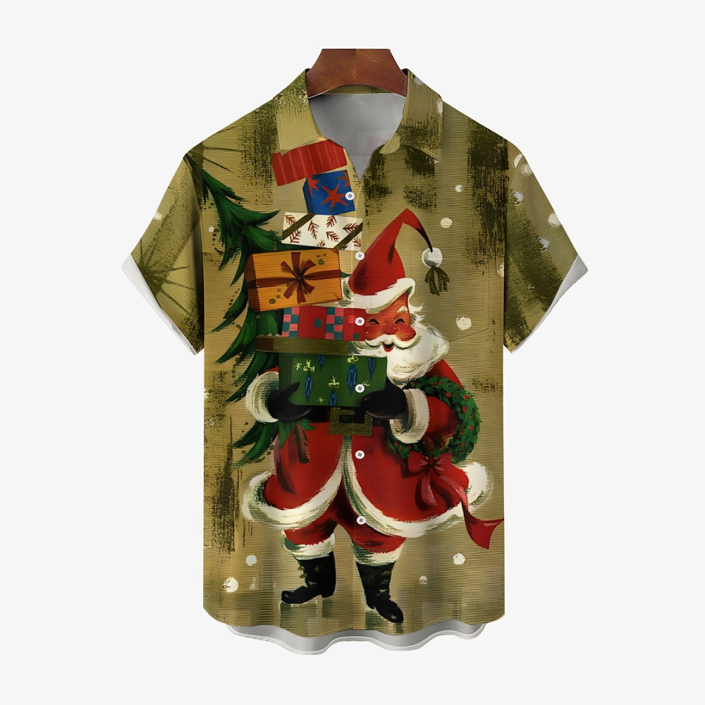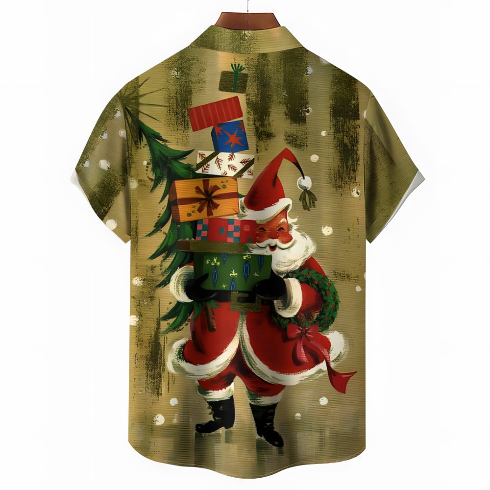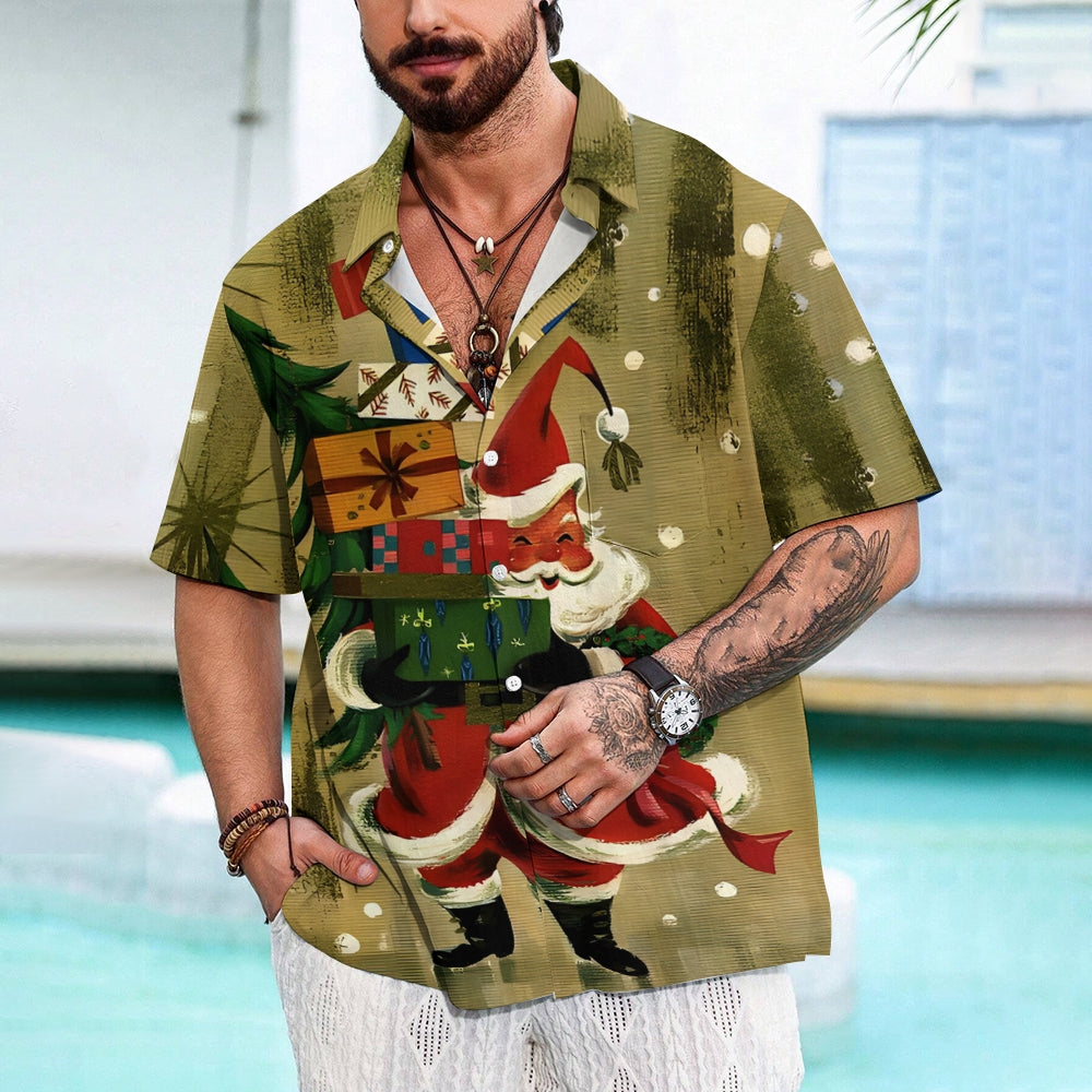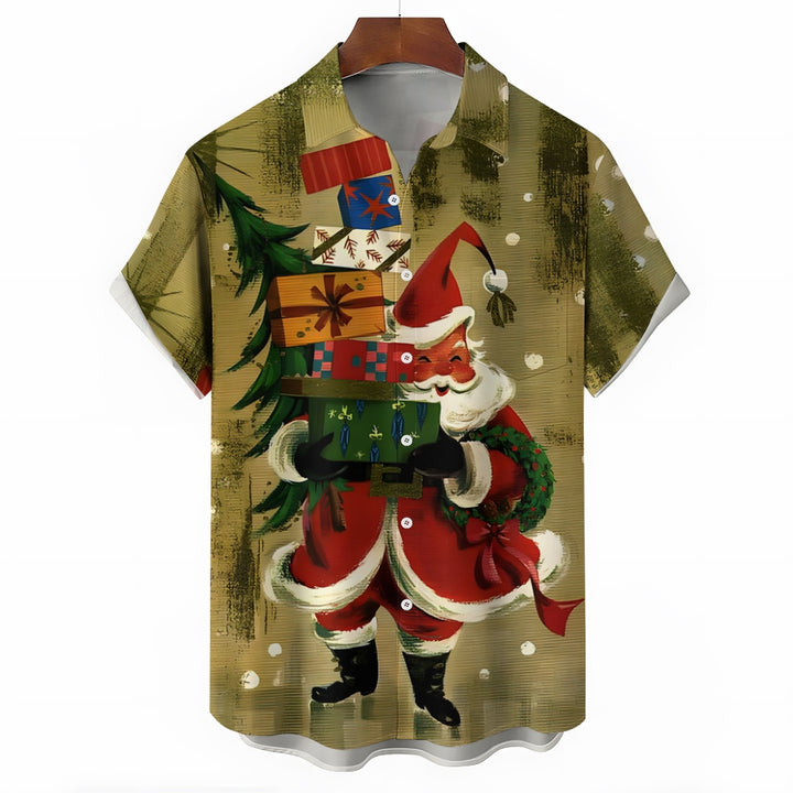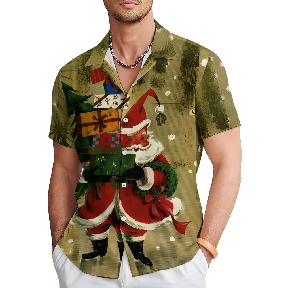 Men's Santa Claus Print Short Sleeve Button Shirt 2411009399