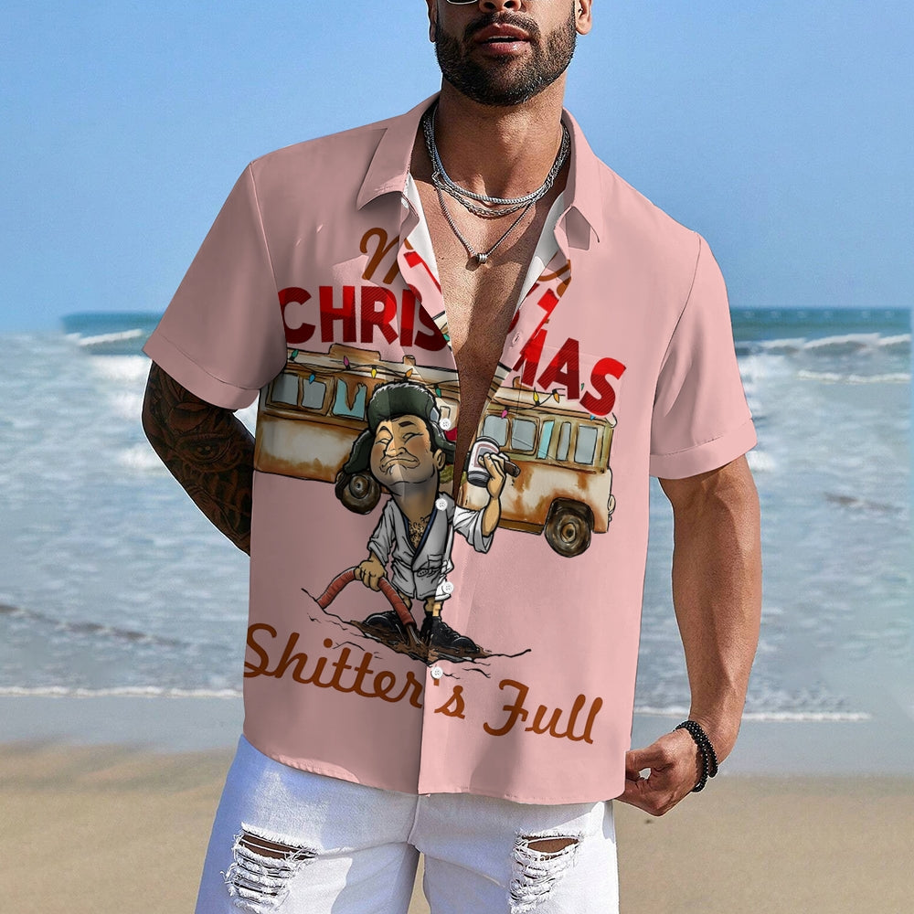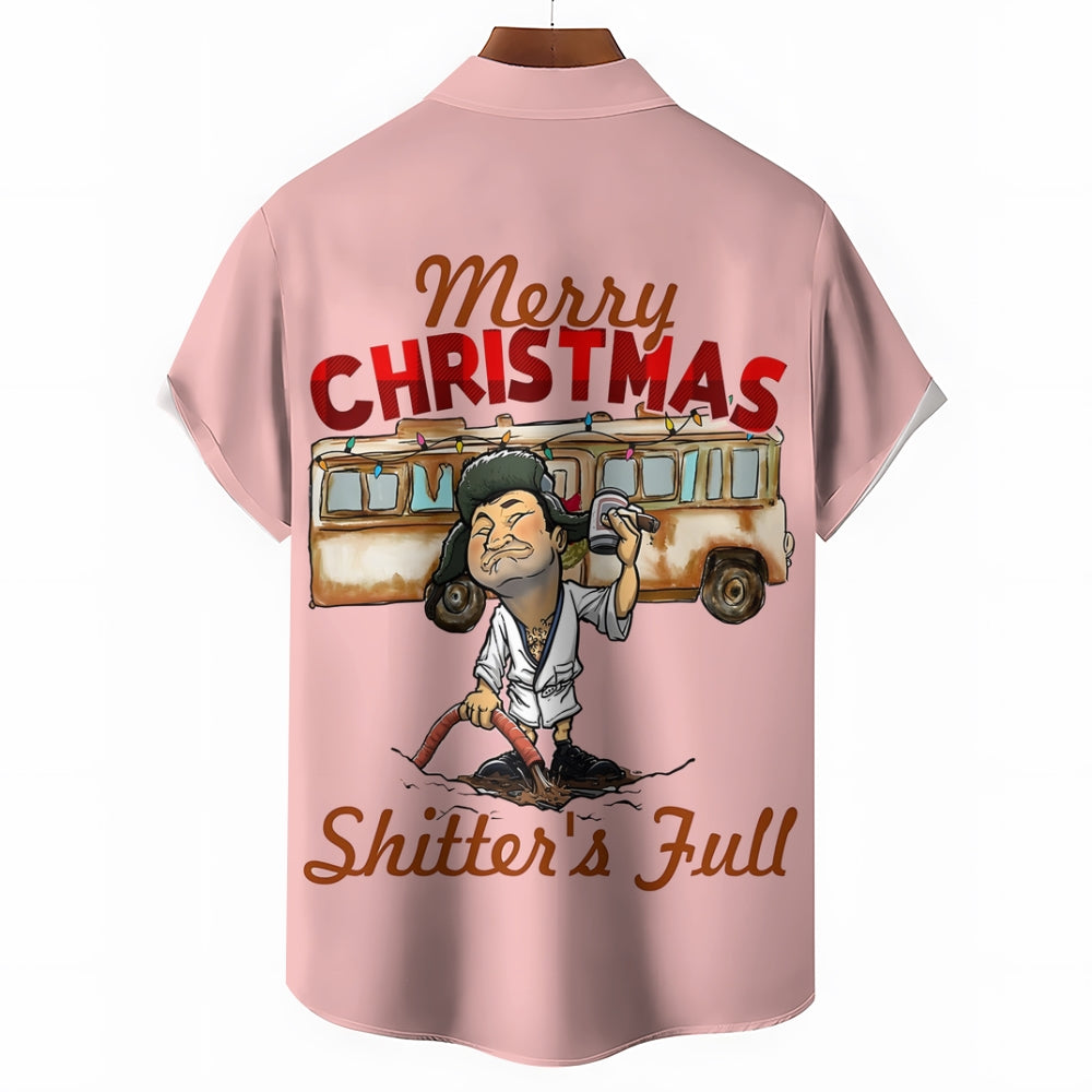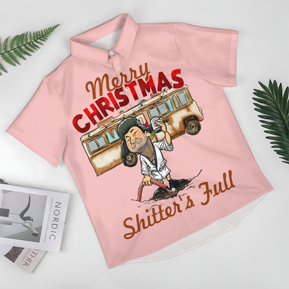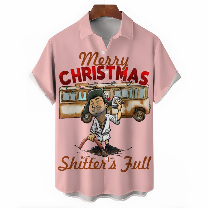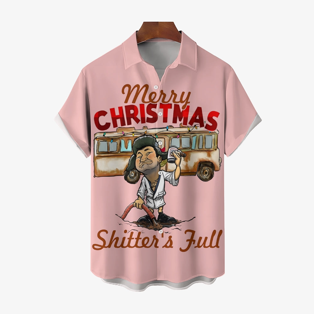 Merry Christmas Fun Character Prints Casual Short Sleeve Shirt 2412003114