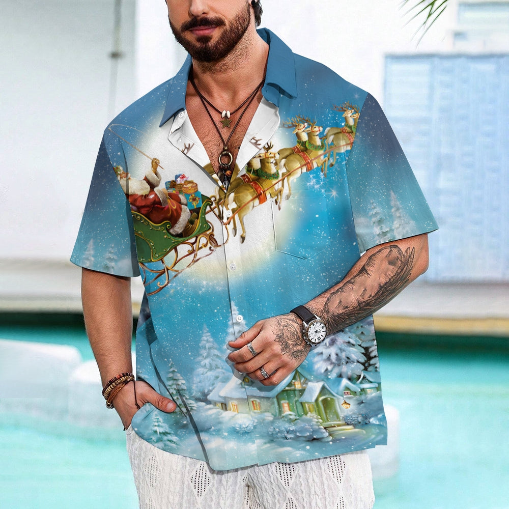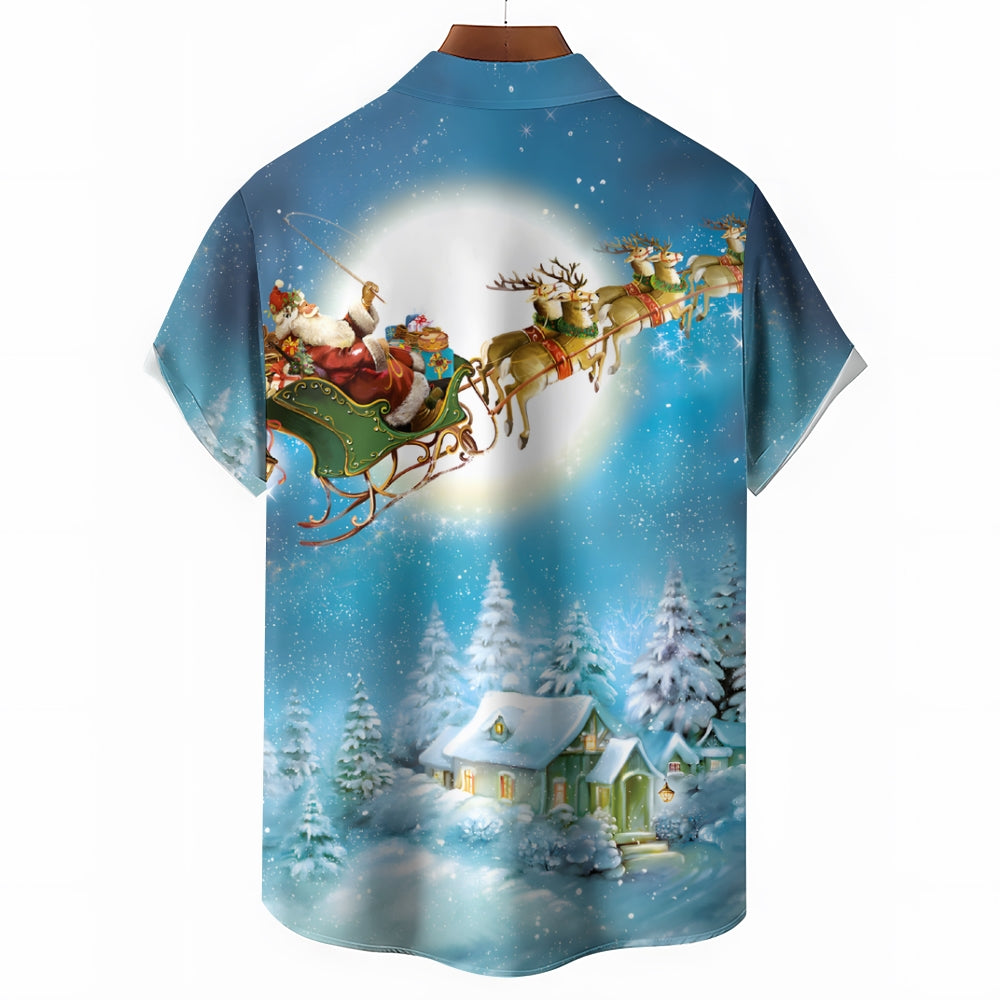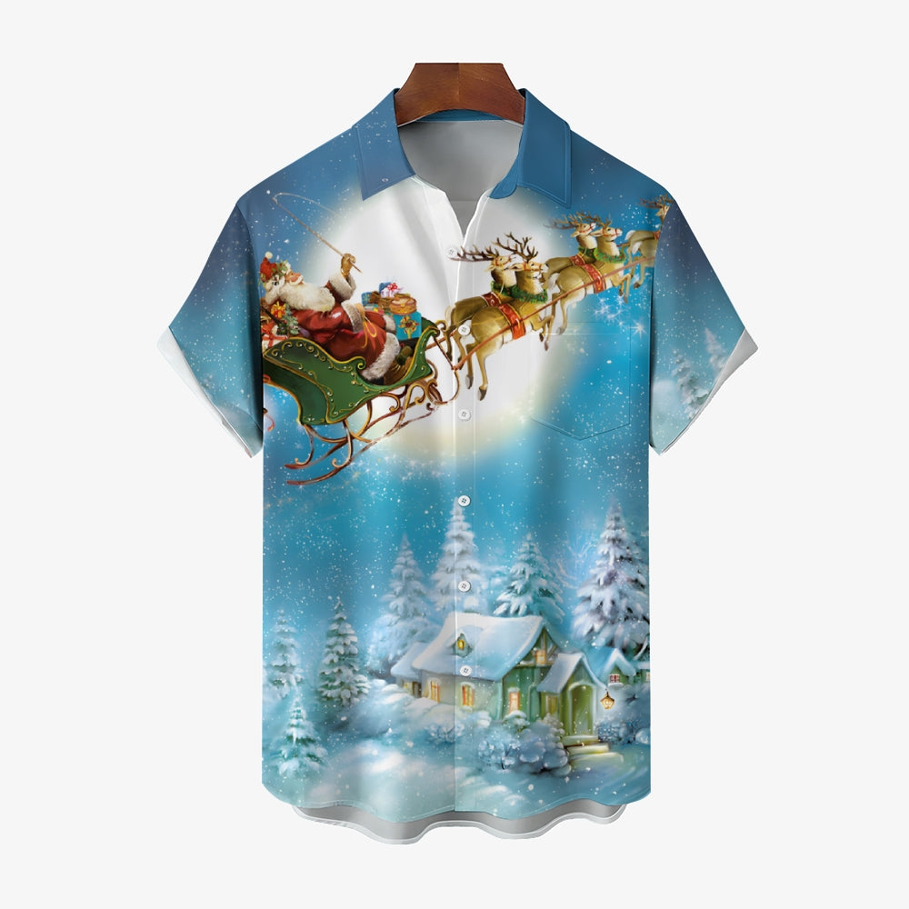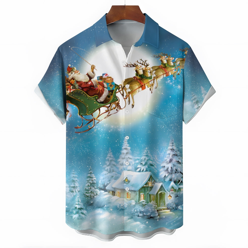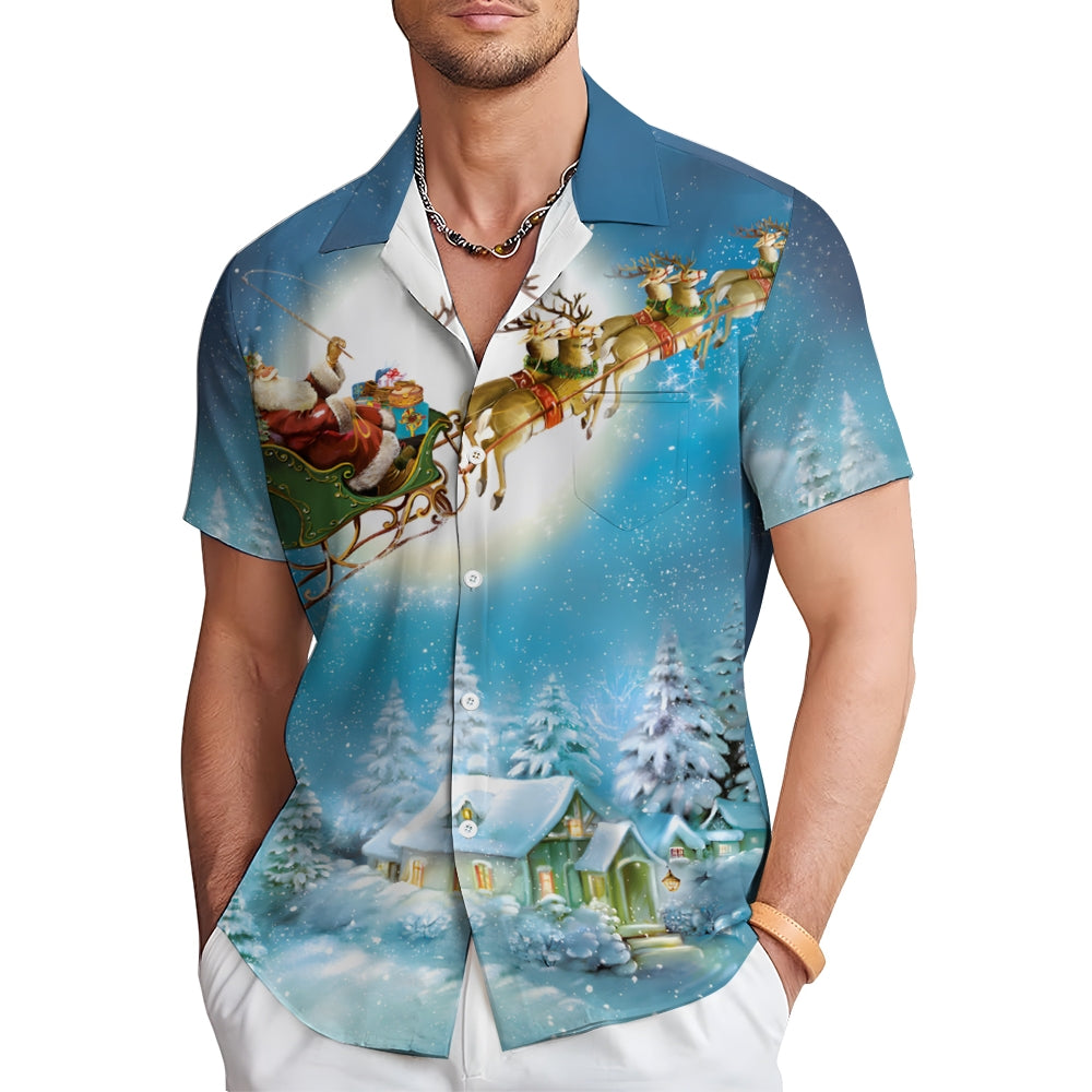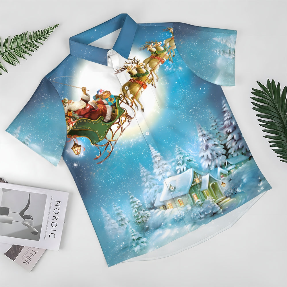Santa Claus Christmas Print Short Sleeve Shirt 2411004010
