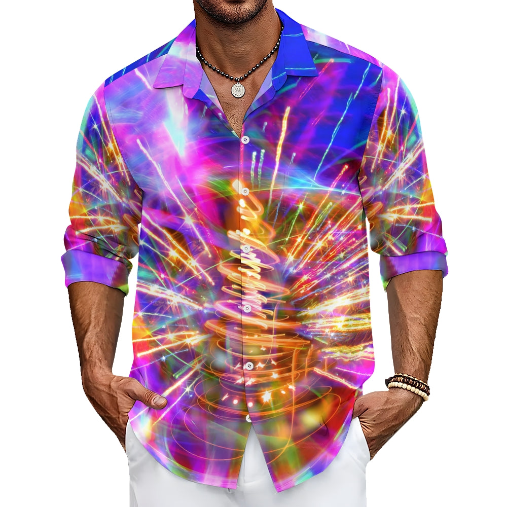 Sparkling Fireworks Christmas Tree Printed Long Sleeve Shirt 2410006426
