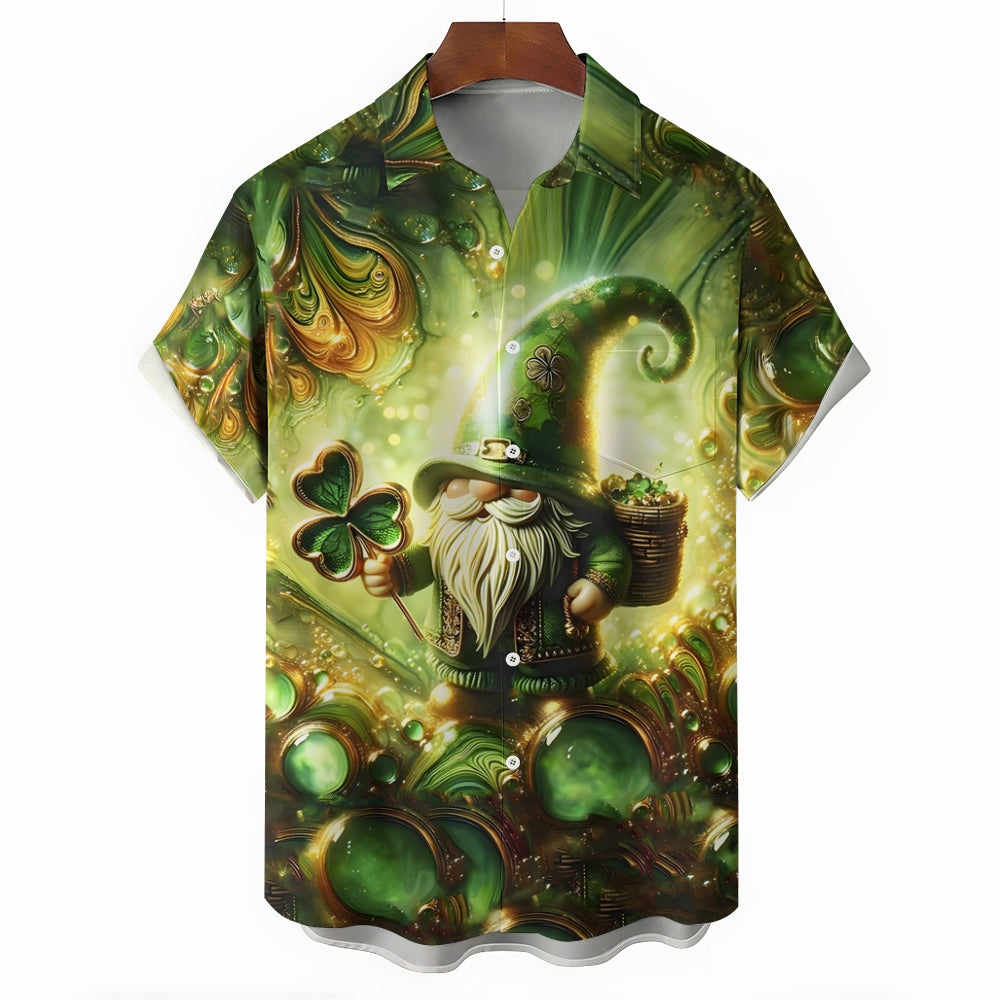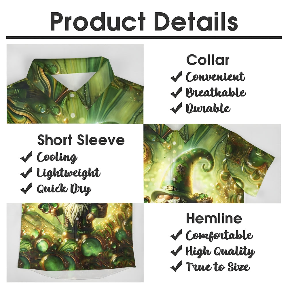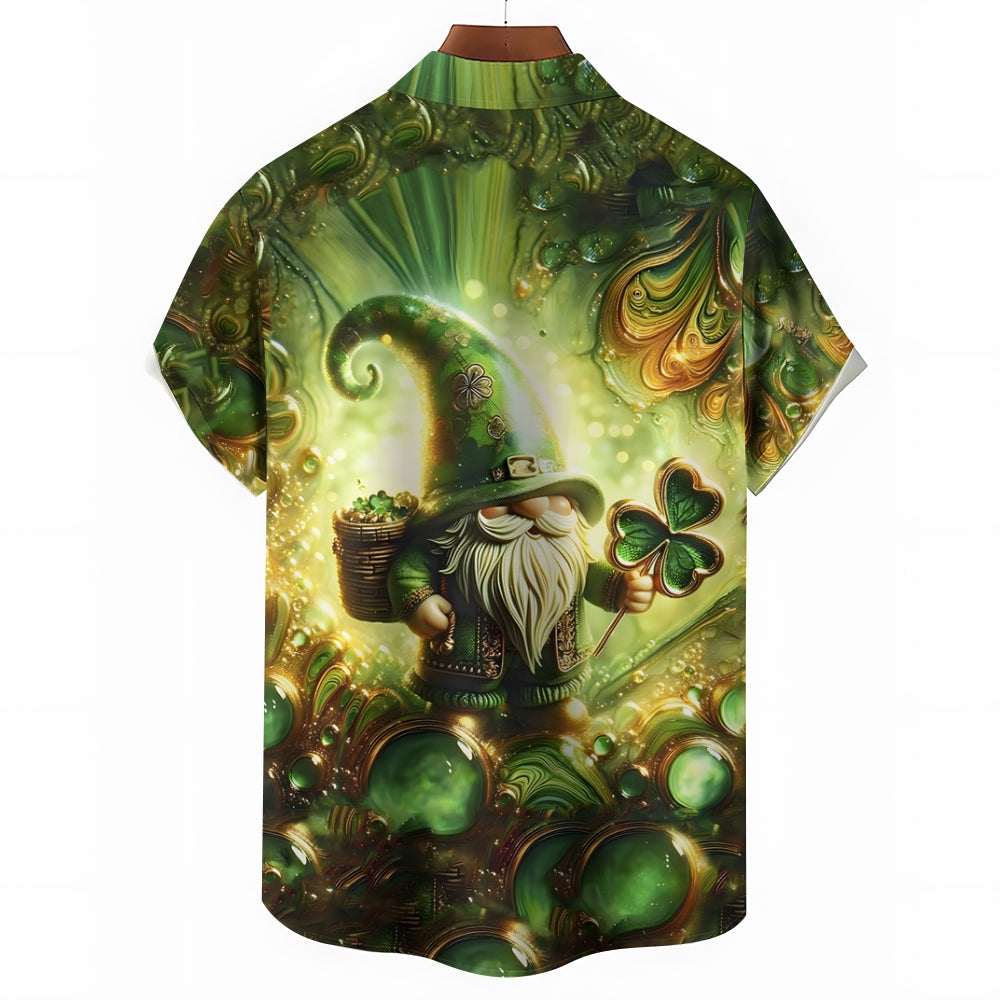 St. Patrick's Day Irish Shamrock Elf Green Lucky Print Short Sleeve Shirt 2412003418