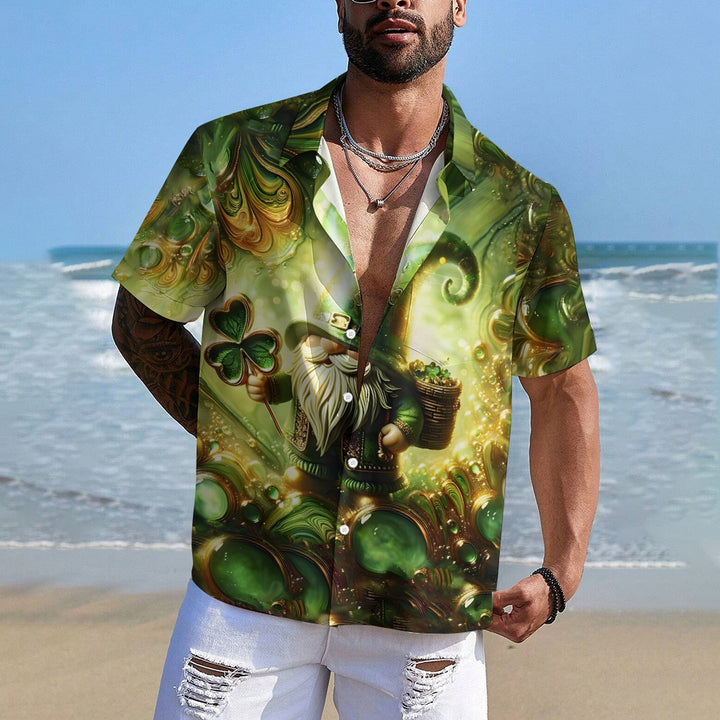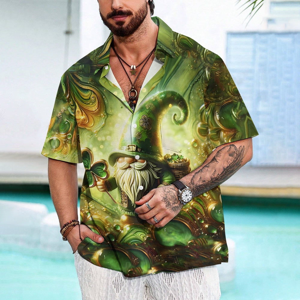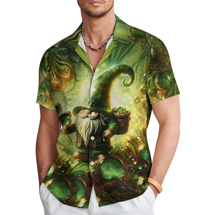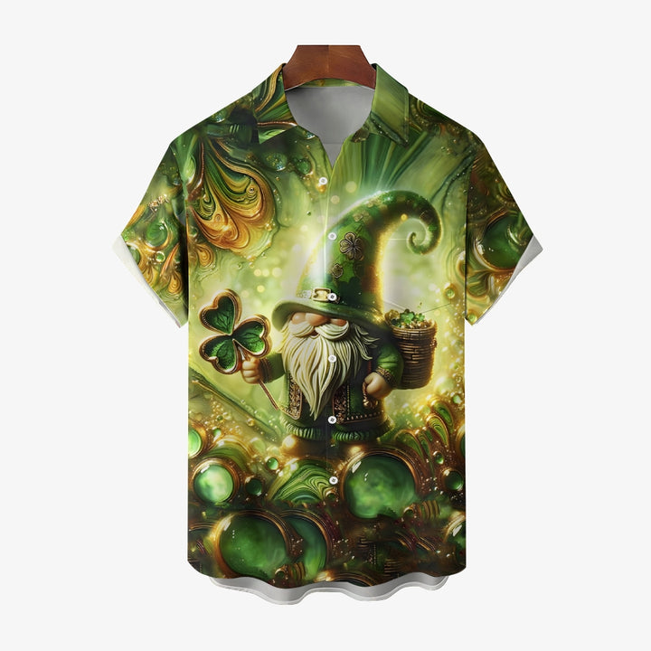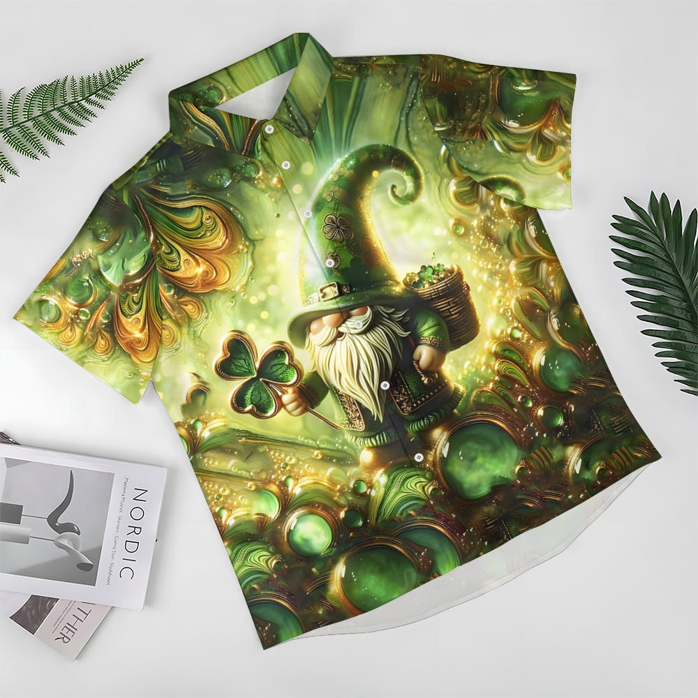 St. Patrick's Day Irish Shamrock Elf Green Lucky Print Short Sleeve Shirt 2412003418