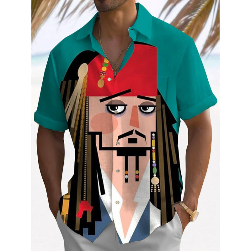 Men's casual with figure print pattern buttons Hawaiian shirt