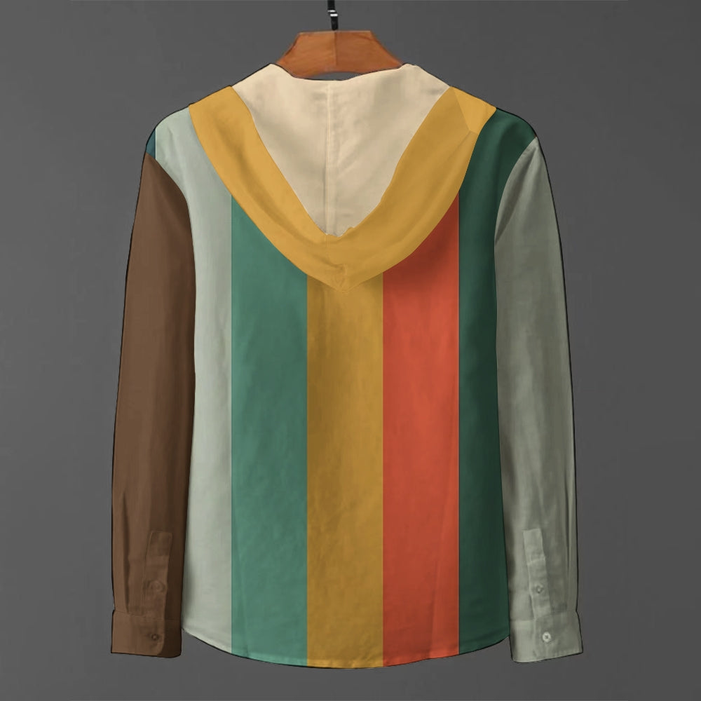 Men's Fun Cat Color Matching Art Printed Hooded Shirt 2408003245