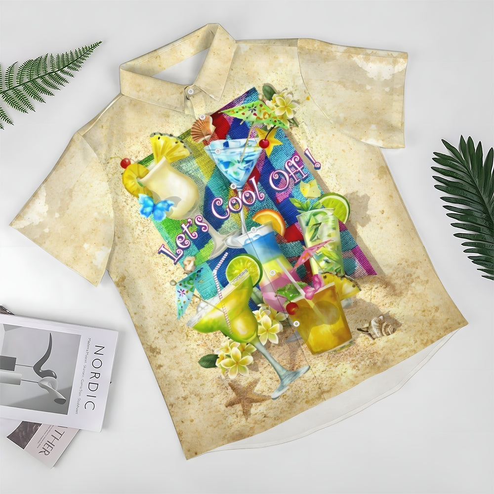 Hawaiian Cocktail Beach Print Short Sleeve Shirt 2412010035