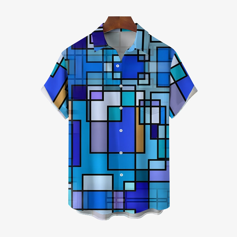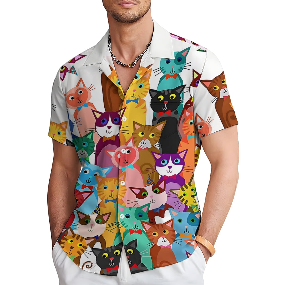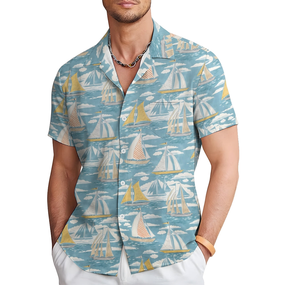 Men's Sailboat Casual Short Sleeve Shirt 2403000041