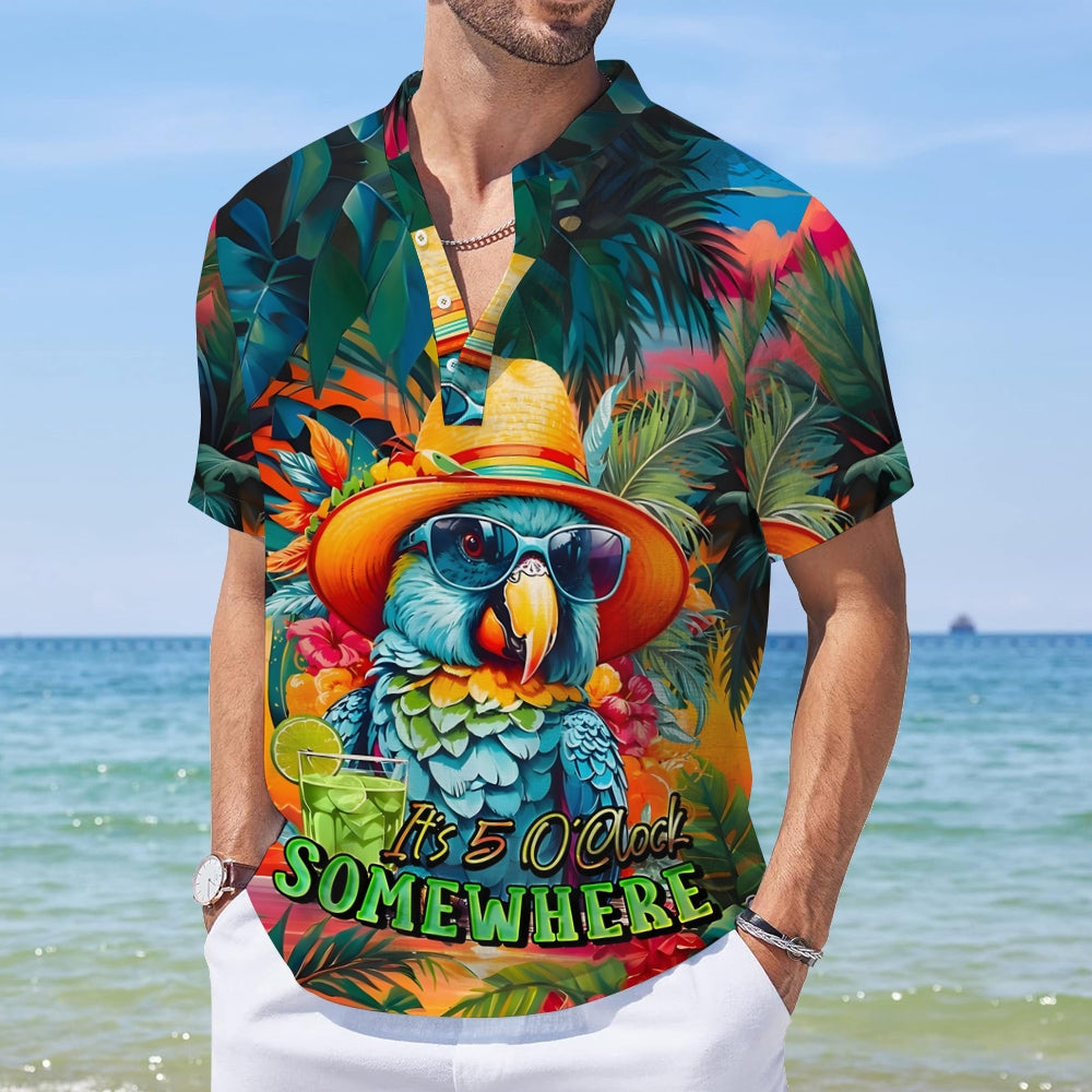 Men's Hawaiian Parrot Print Casual Short Sleeve Shirt 2403000912