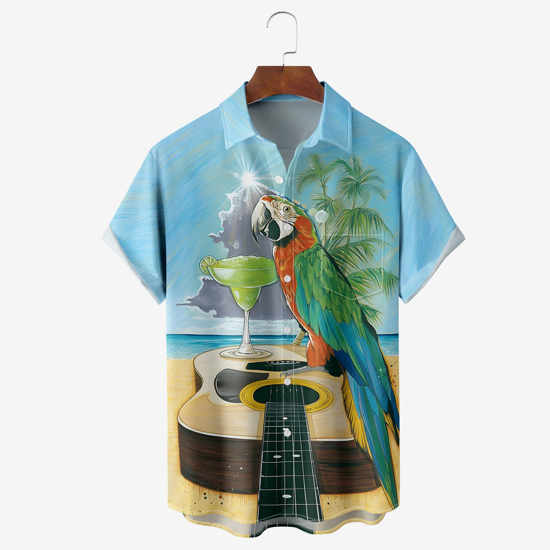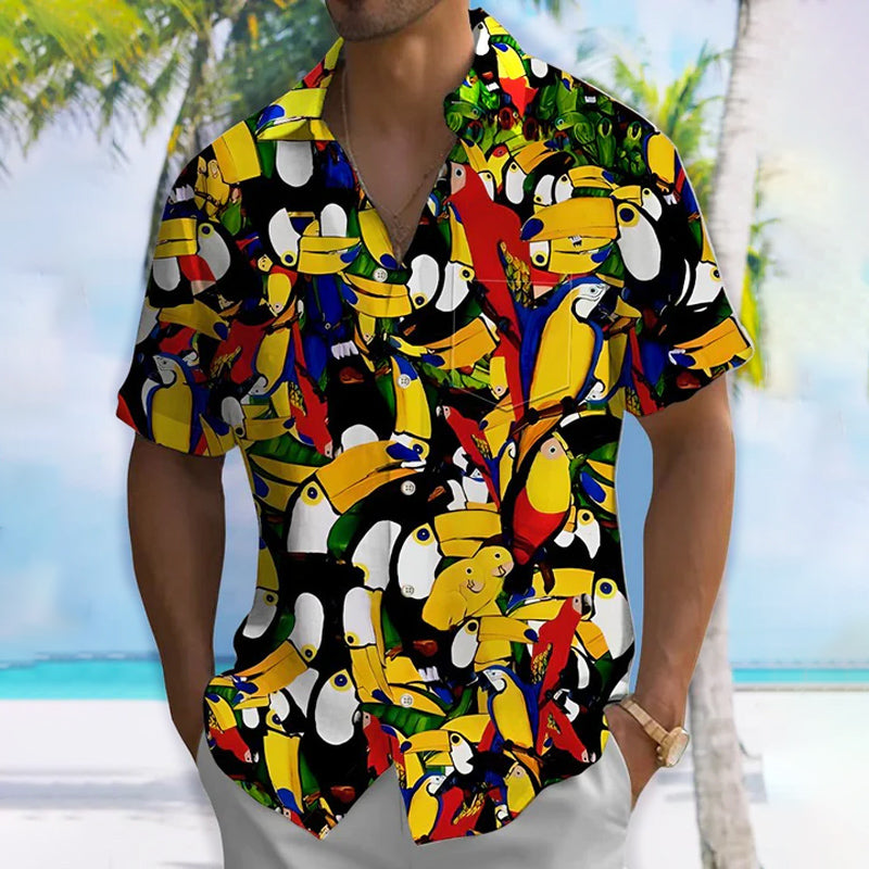 Men's Hawaiian Parrot Casual Short Sleeve Shirt 2402000174