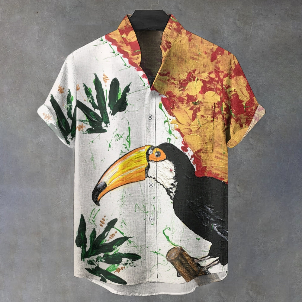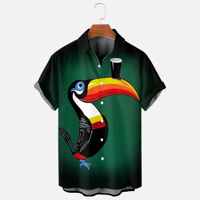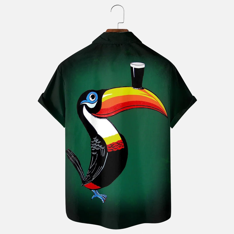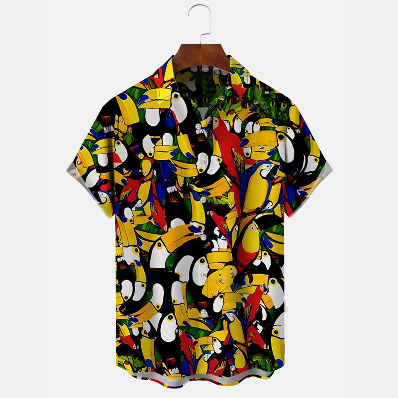 Men's Hawaiian Toucan Print Casual Short Sleeve Shirt 2403000504