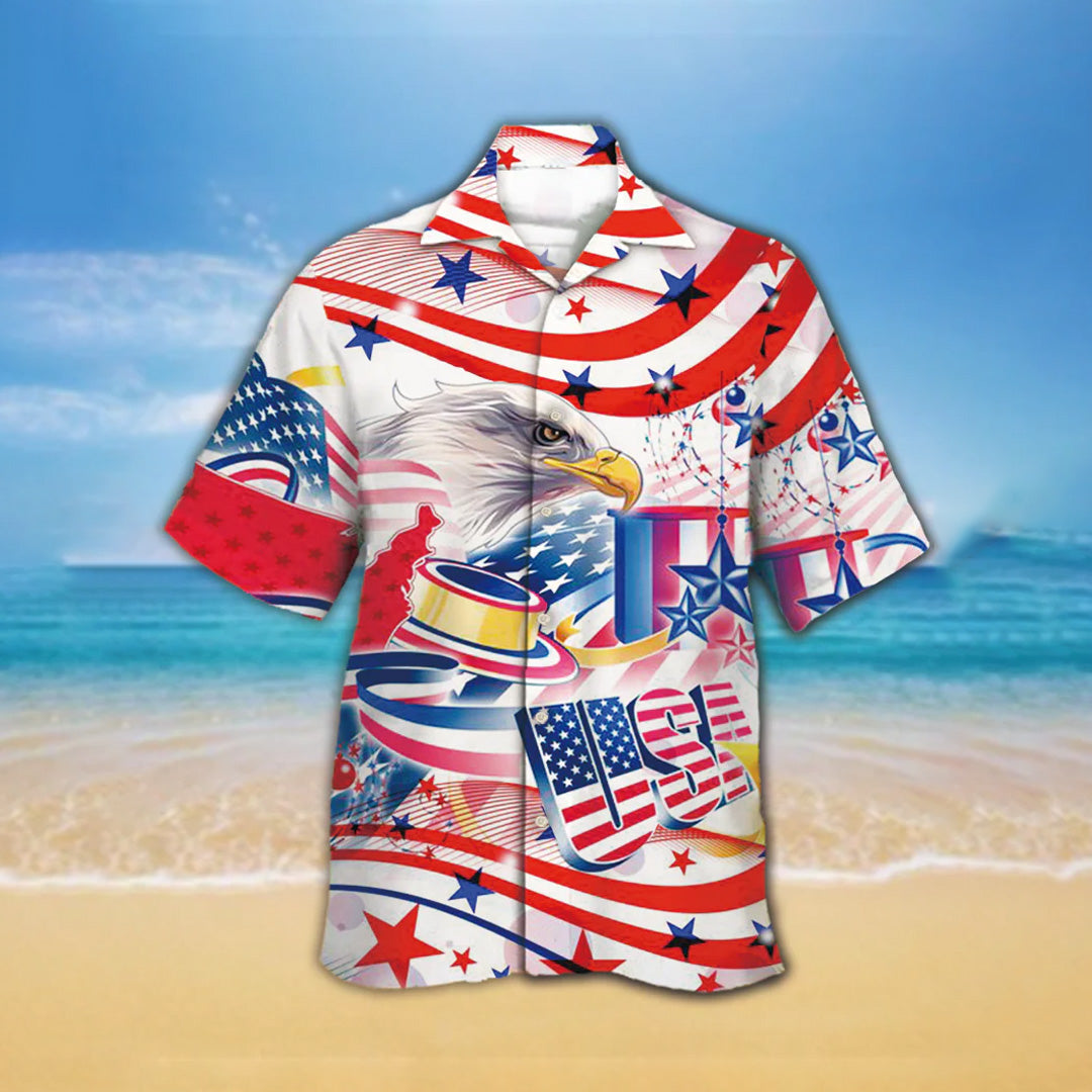 USA Eagle Patriotic Print Casual Short Sleeve Shirt 2404000372