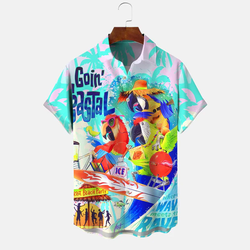 Hawaiian Parrot Print Casual Short Sleeve Shirt 2411000263