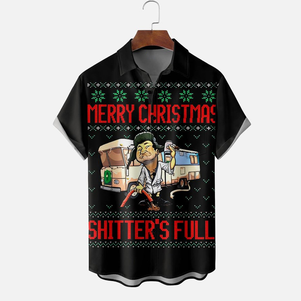 Merry Christmas Fun Character Prints Casual Short Sleeve Shirt 2412003114