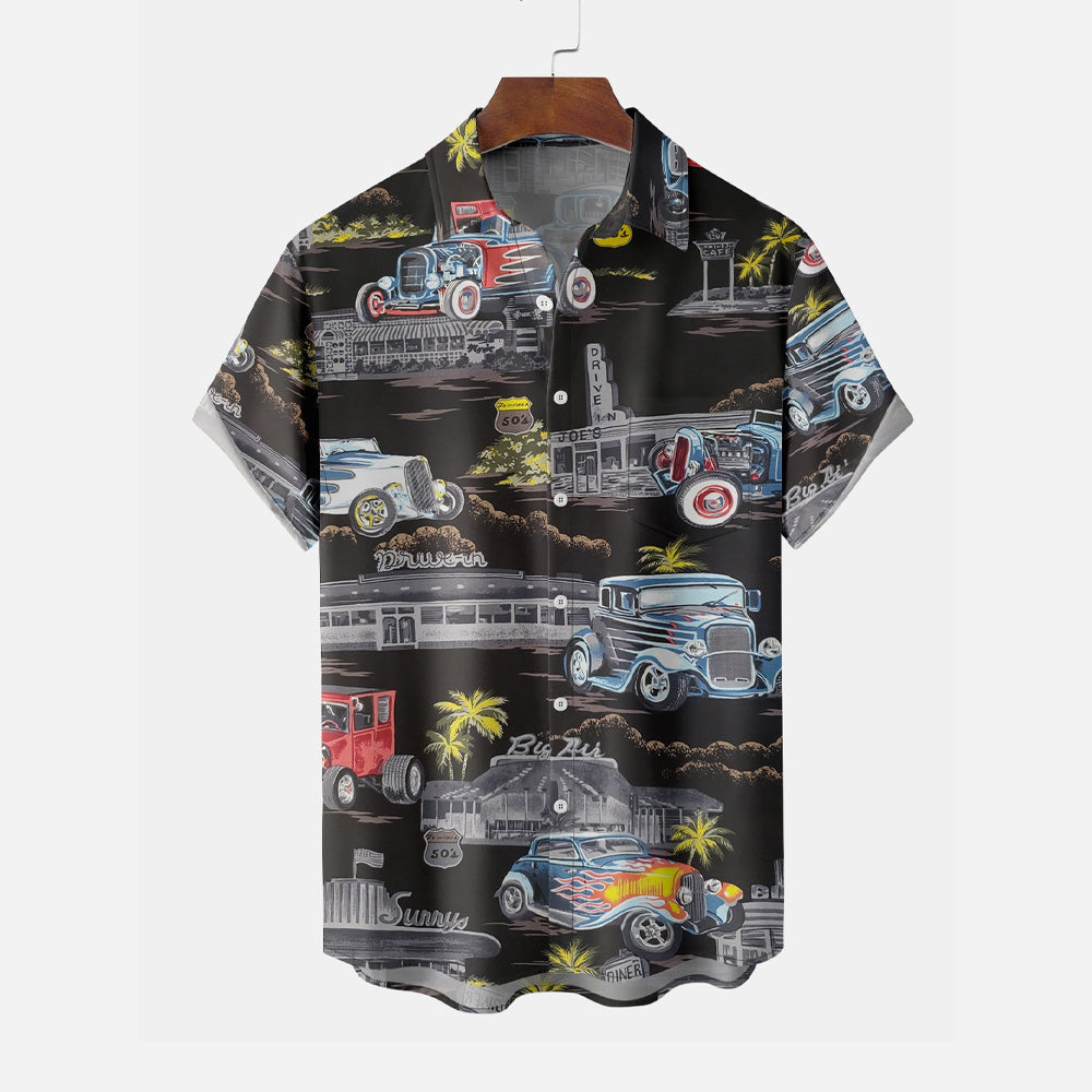 Men's Retro Car Casual Short Sleeve Shirt 2402000246