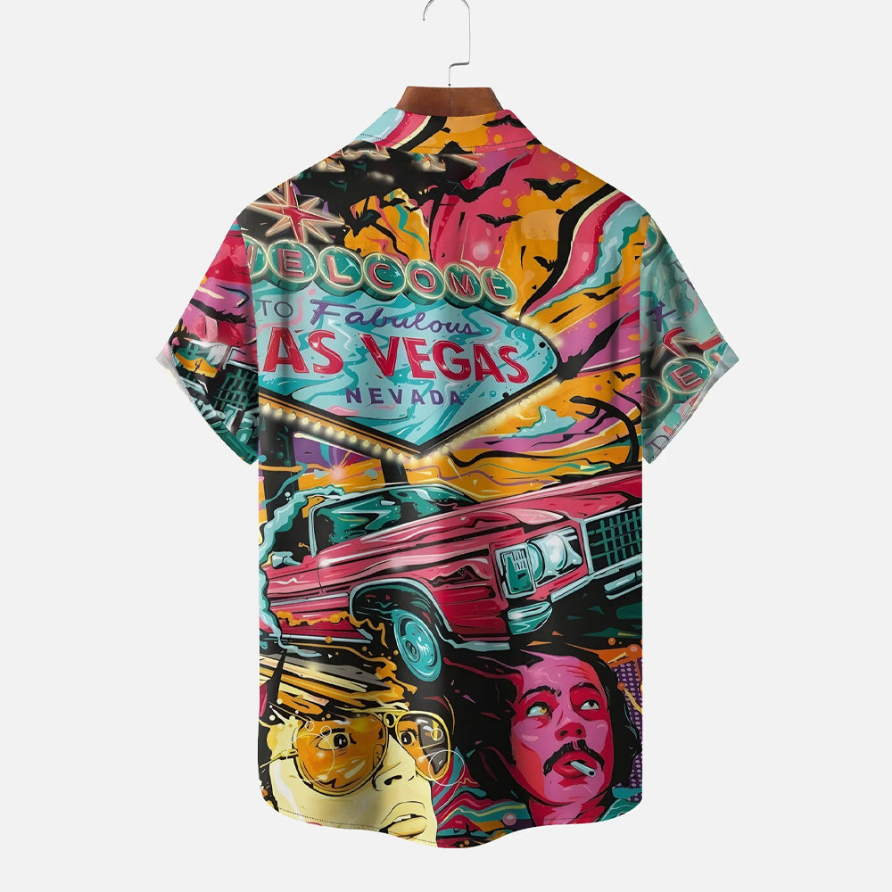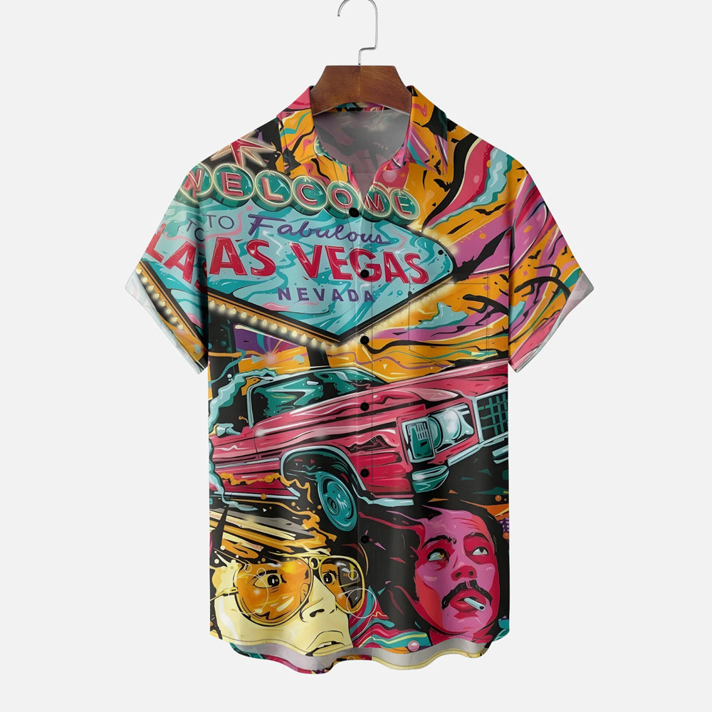 Las Vegas Poster Print Casual Short Sleeve Shirt 2410008349