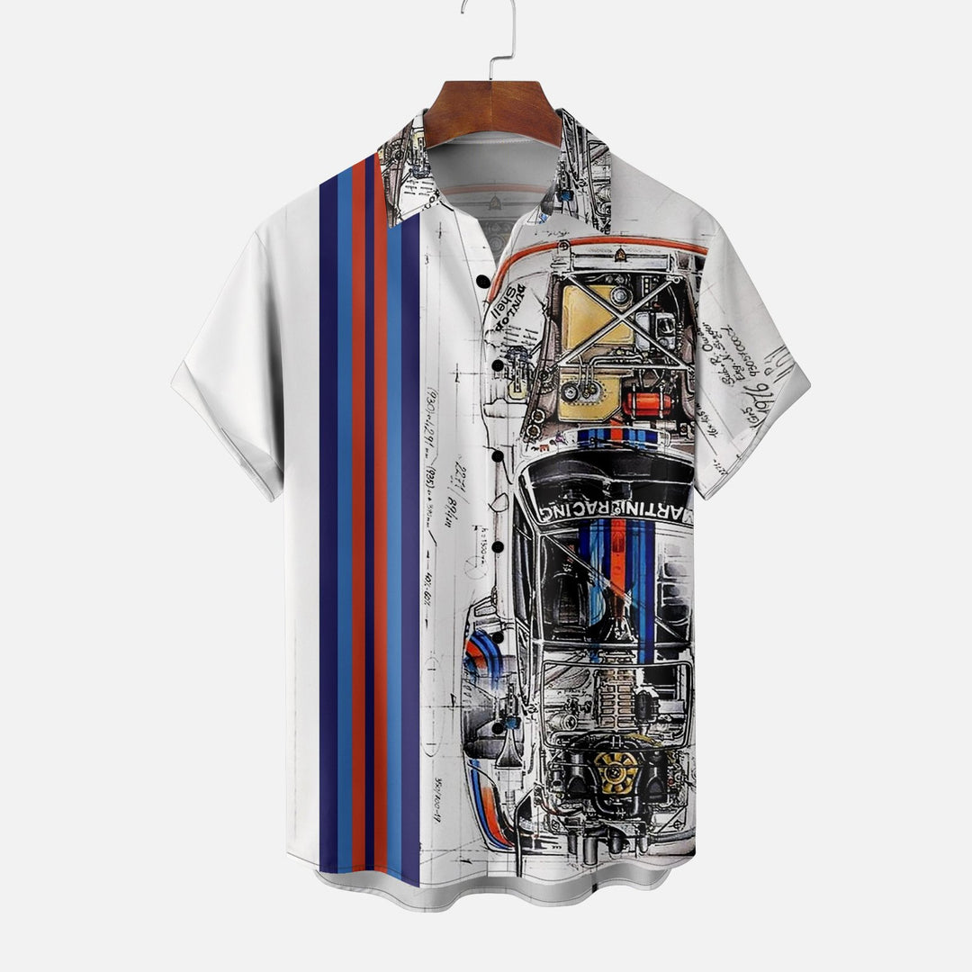 Men's Retro Car Casual Short Sleeve Shirt 2401000334