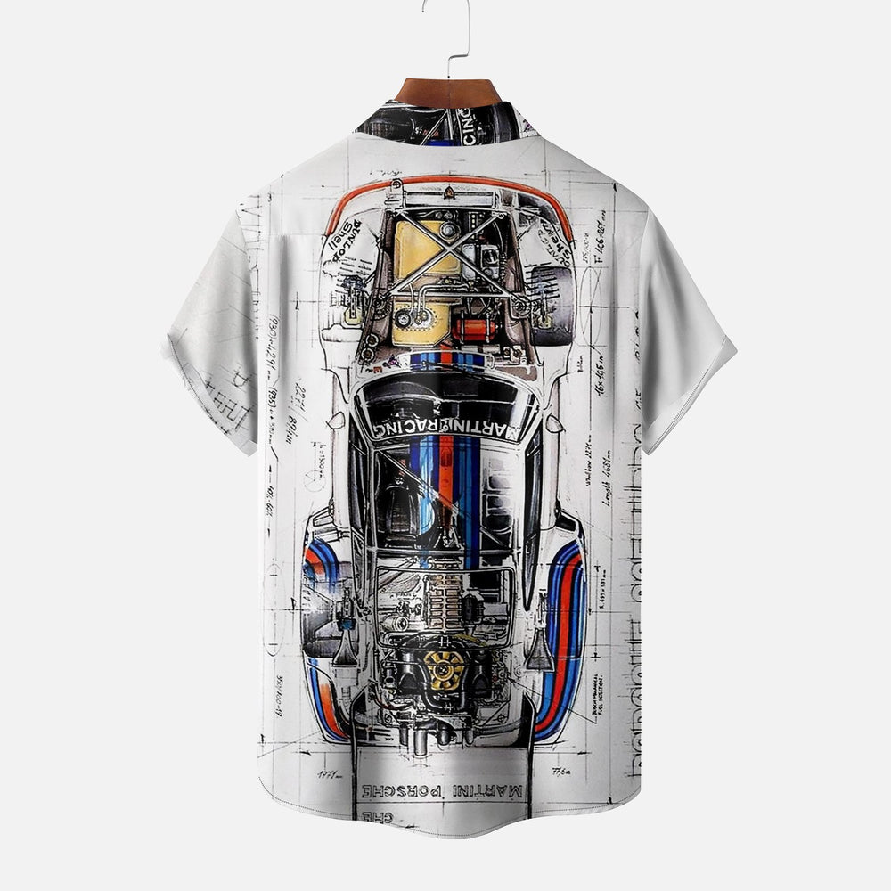 Retro Sports Car GTR Print Casual Short Sleeve Shirt 2404000482